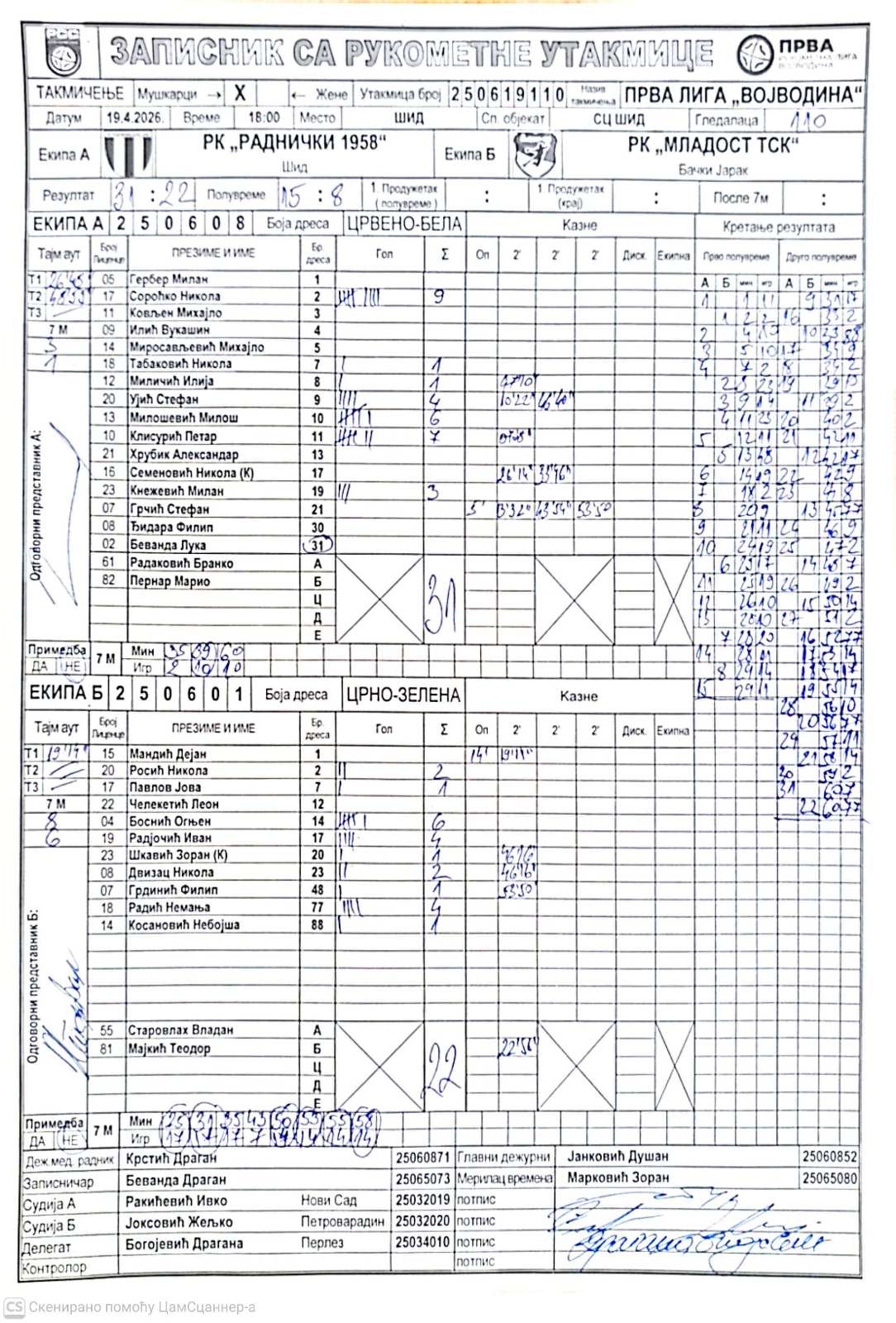А судија: Ивко Ракићевић Б судија: Жељко Јоксовић Делегат: Драгана Богојевић |