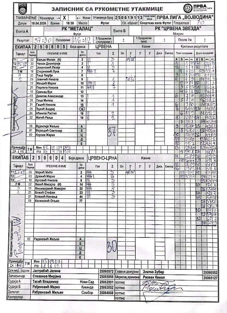 А судија: Владимир Тасић Б судија: Марко Рађеновић Делегат: Миљан Рабреновић |