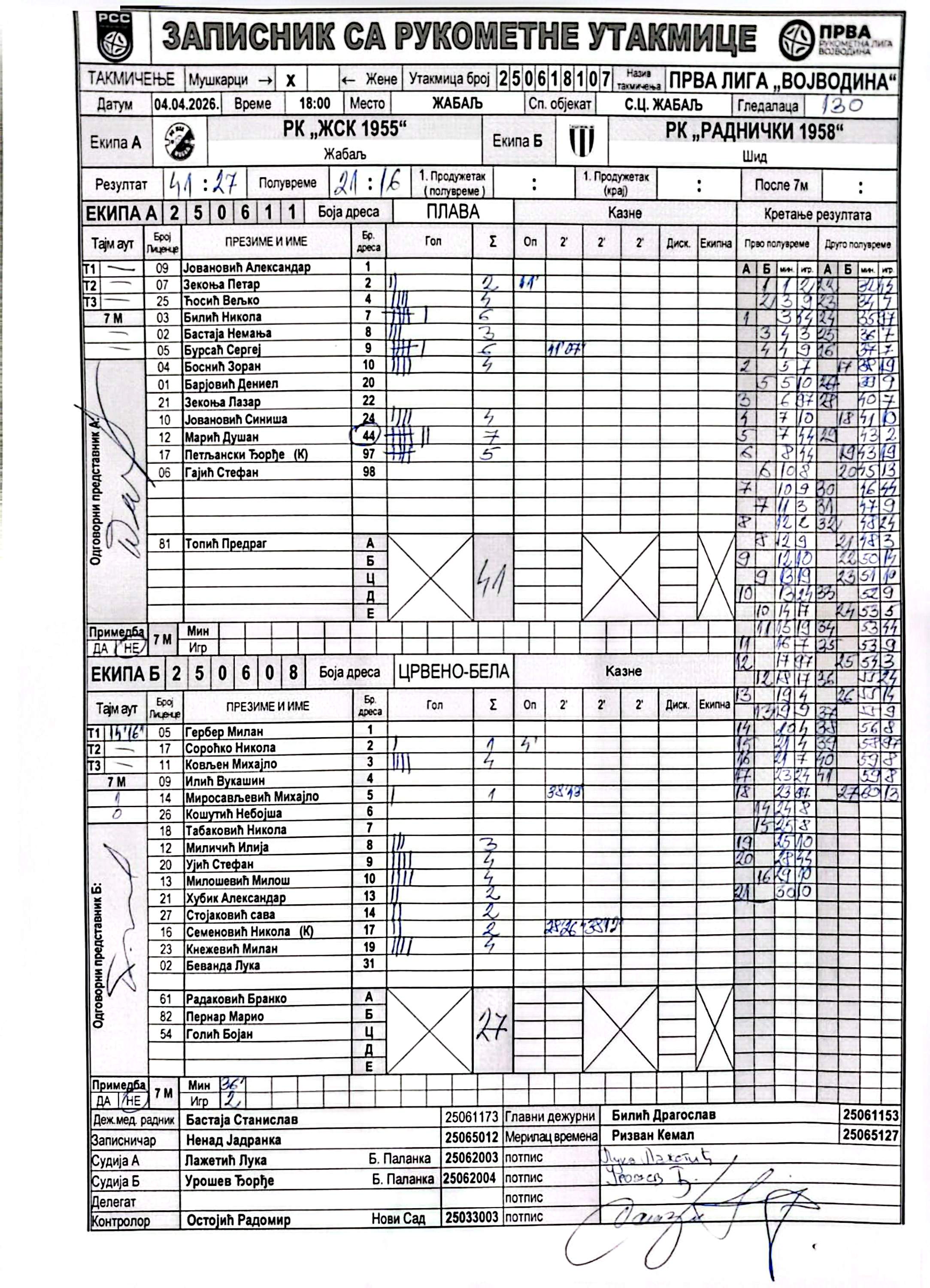 А судија: Лука Лажетић Б судија: Ђорђе Урошев Контролор: Радомир Остојић |