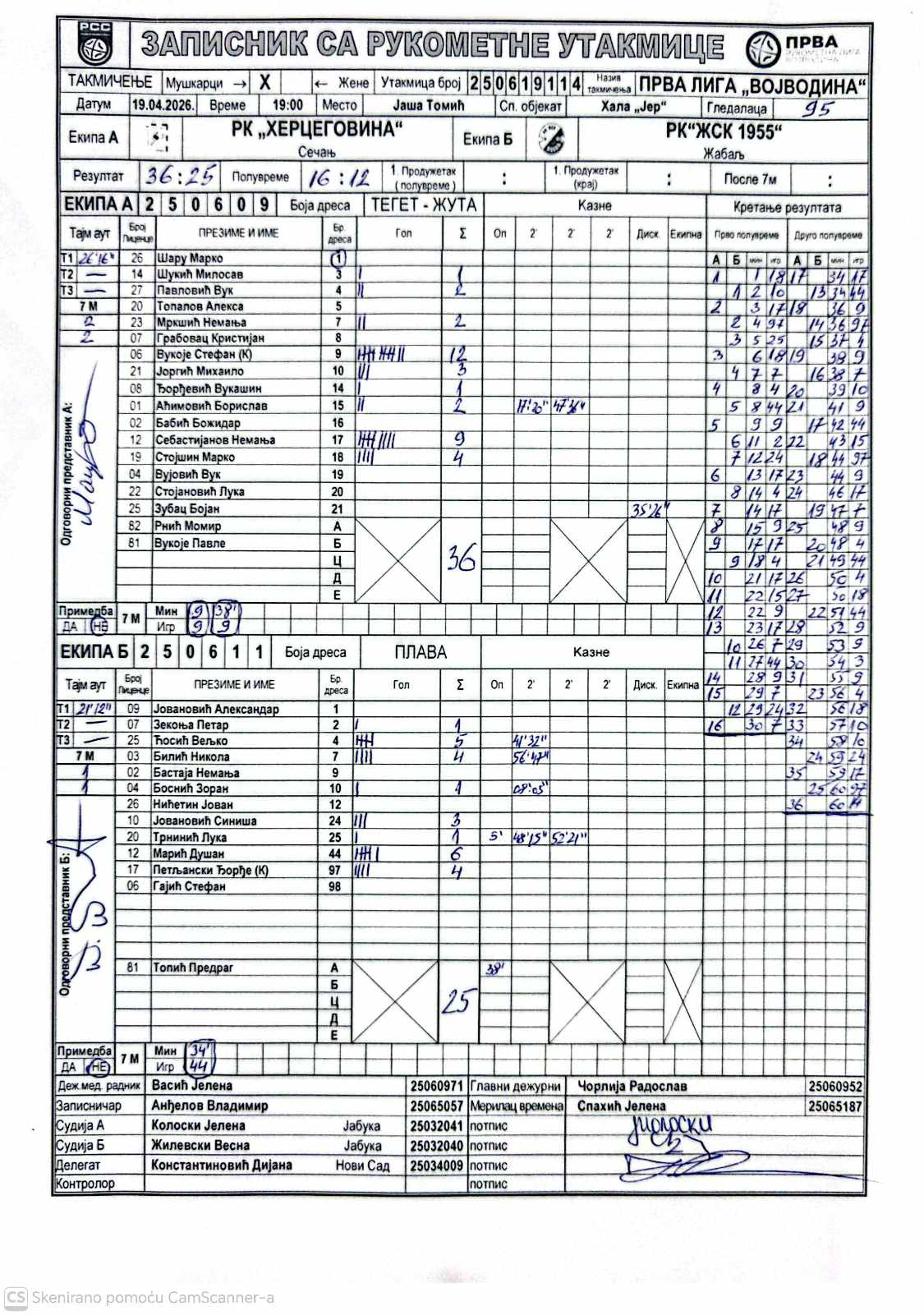 А судија: Јелена Колоски Б судија: Весна Жилевски Делегат: Дијана Константиновић |