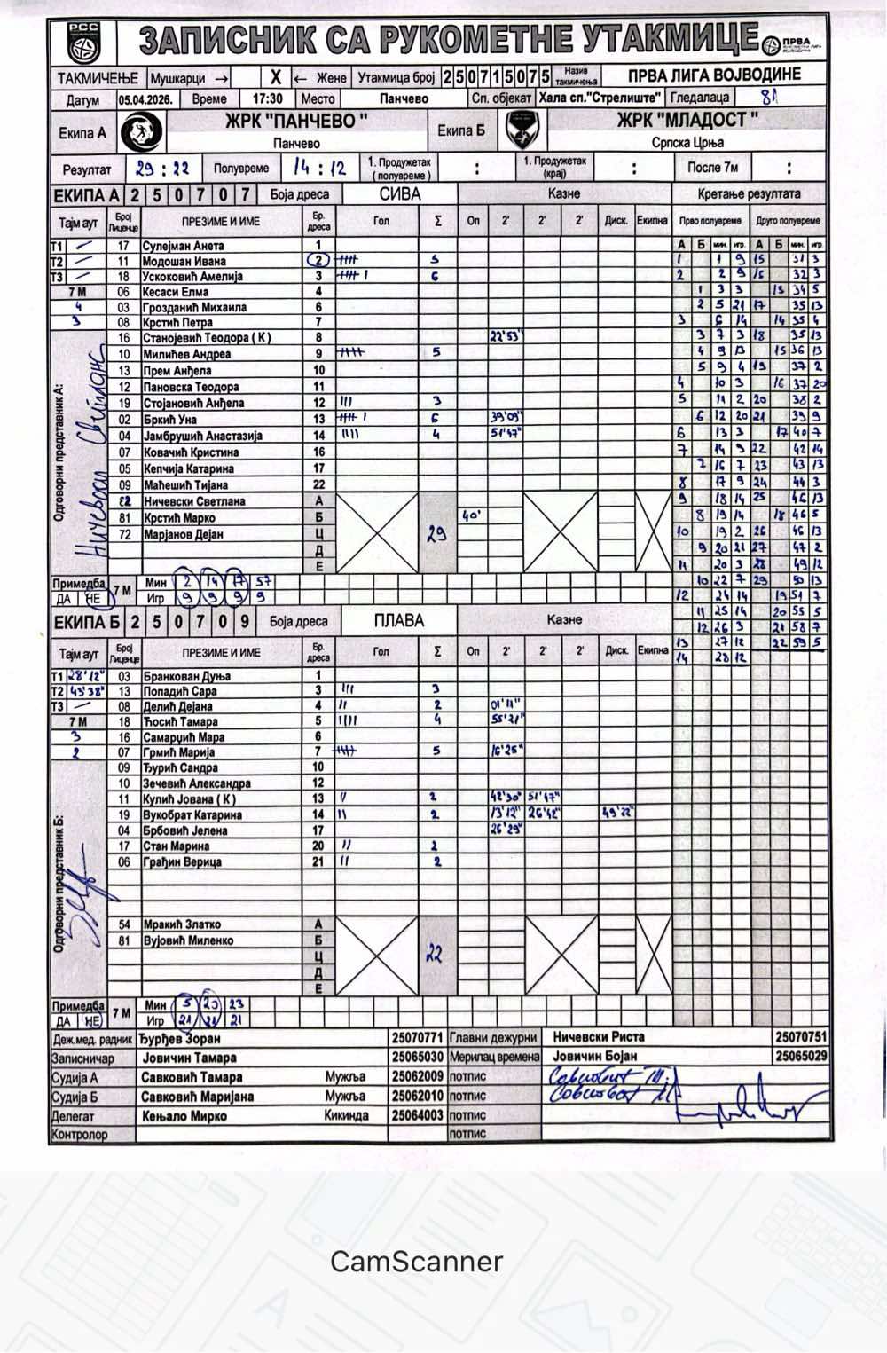 А судија: Тамара Савковић Б судија: Маријана Савковић Делегат: Мирко Кењало |