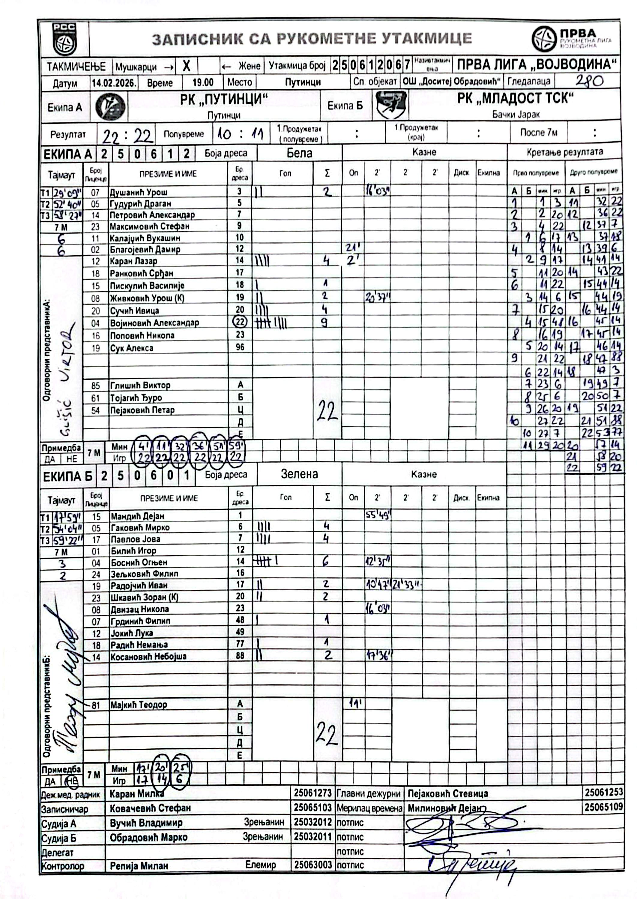 А судија: Владимир Вучић Б судија: Марко Обрадовић Контролор: Милан Репија |
