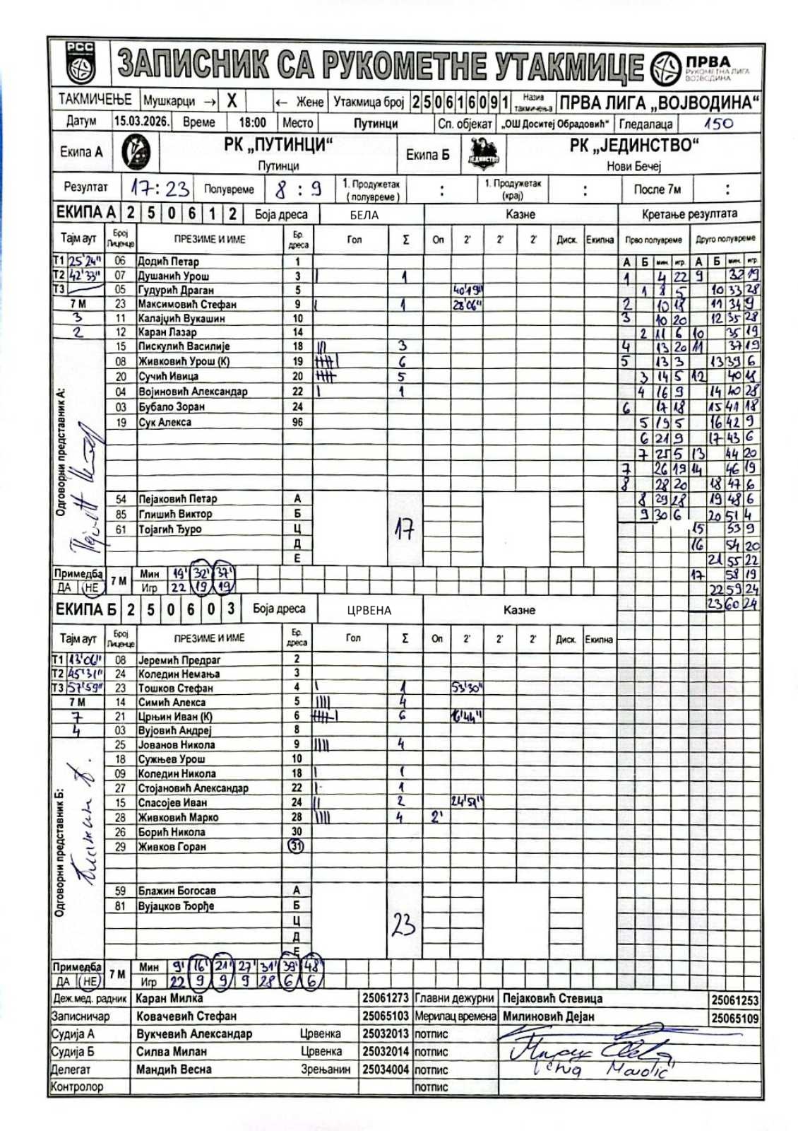 А судија: Александар Вукчевић Б судија: Милан Слива Делегат: Весна Мандић |