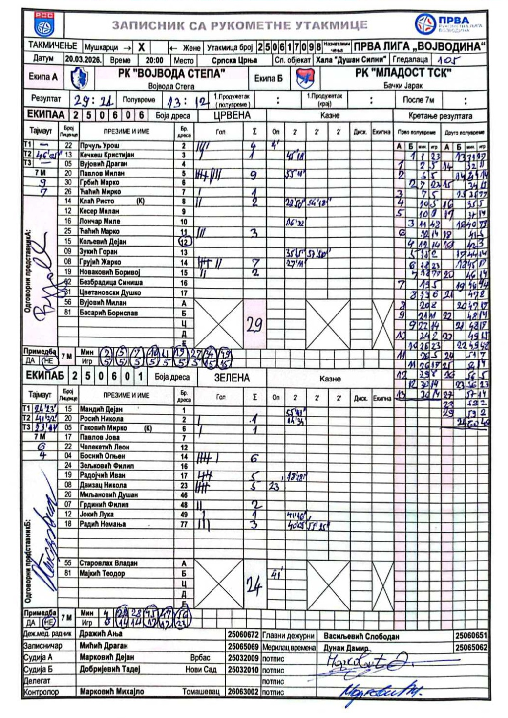 А судија: Дејан Марковић Б судија: Тадеј Добријевић Контролор: Михајло Марковић |