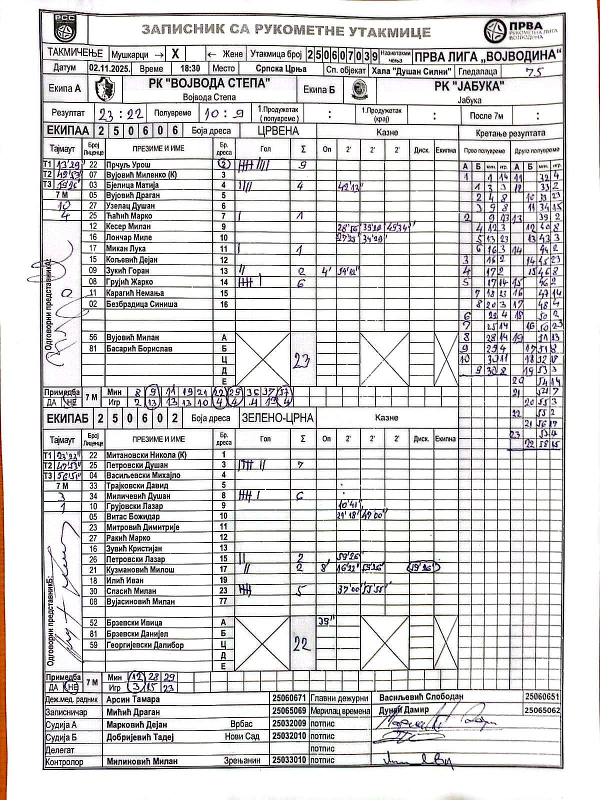 А судија: Дејан Марковић Б судија: Тадеј Добријевић Контролор: Милан Милиновић |