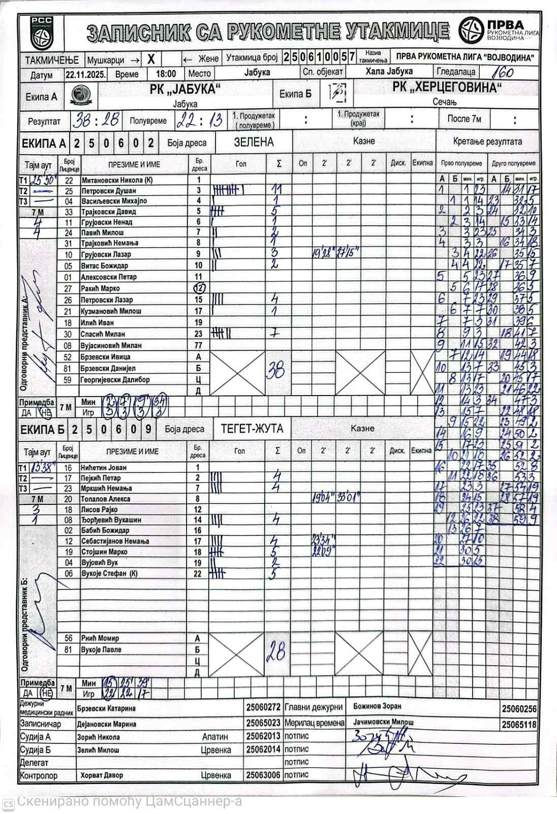 А судија: Никола Зорић Б судија: Милош Зелић Контролор: Давор Хорват |