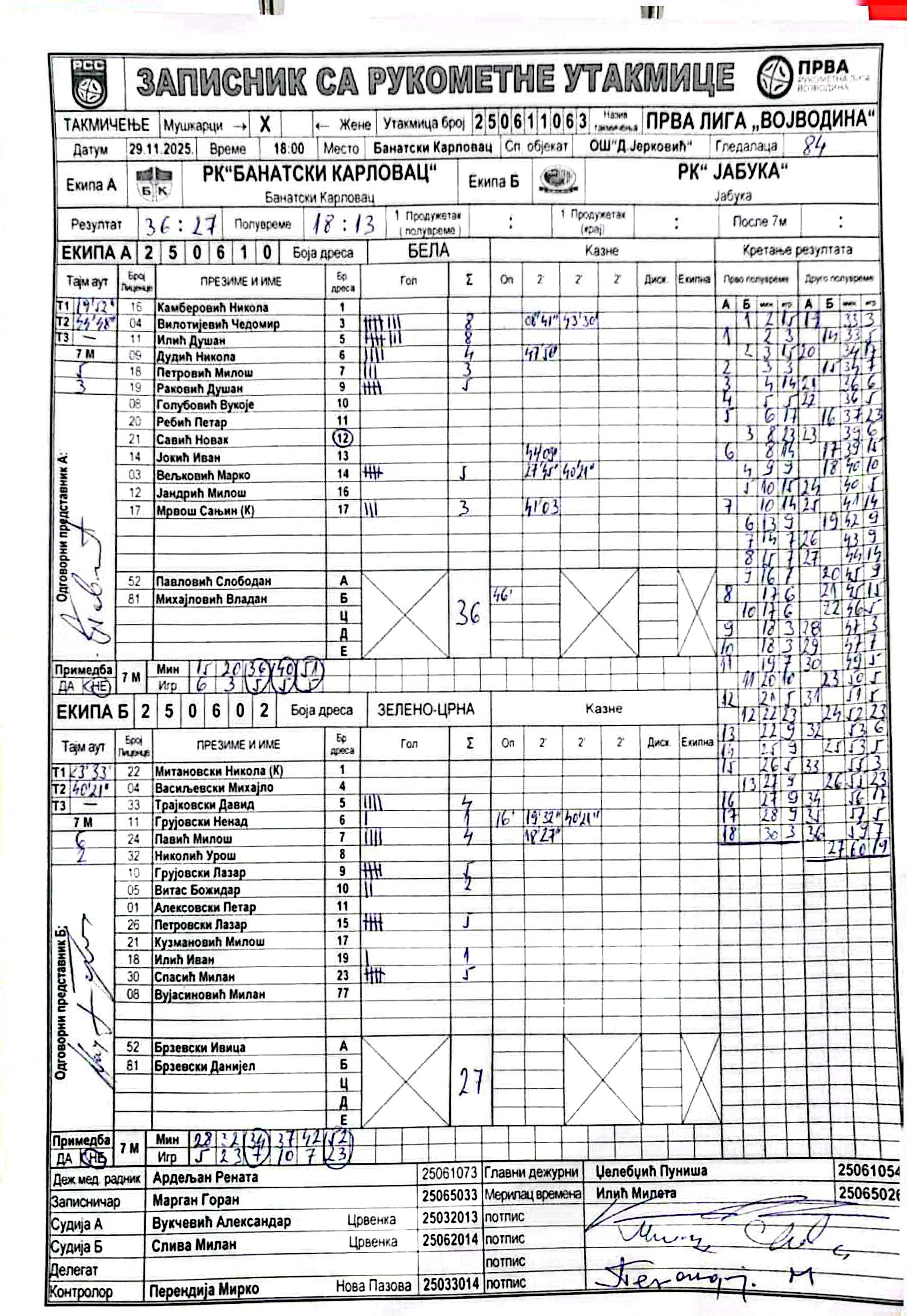 А судија: Александар Вукчевић Б судија: Милан Слива Контролор: Мирко Перендија |