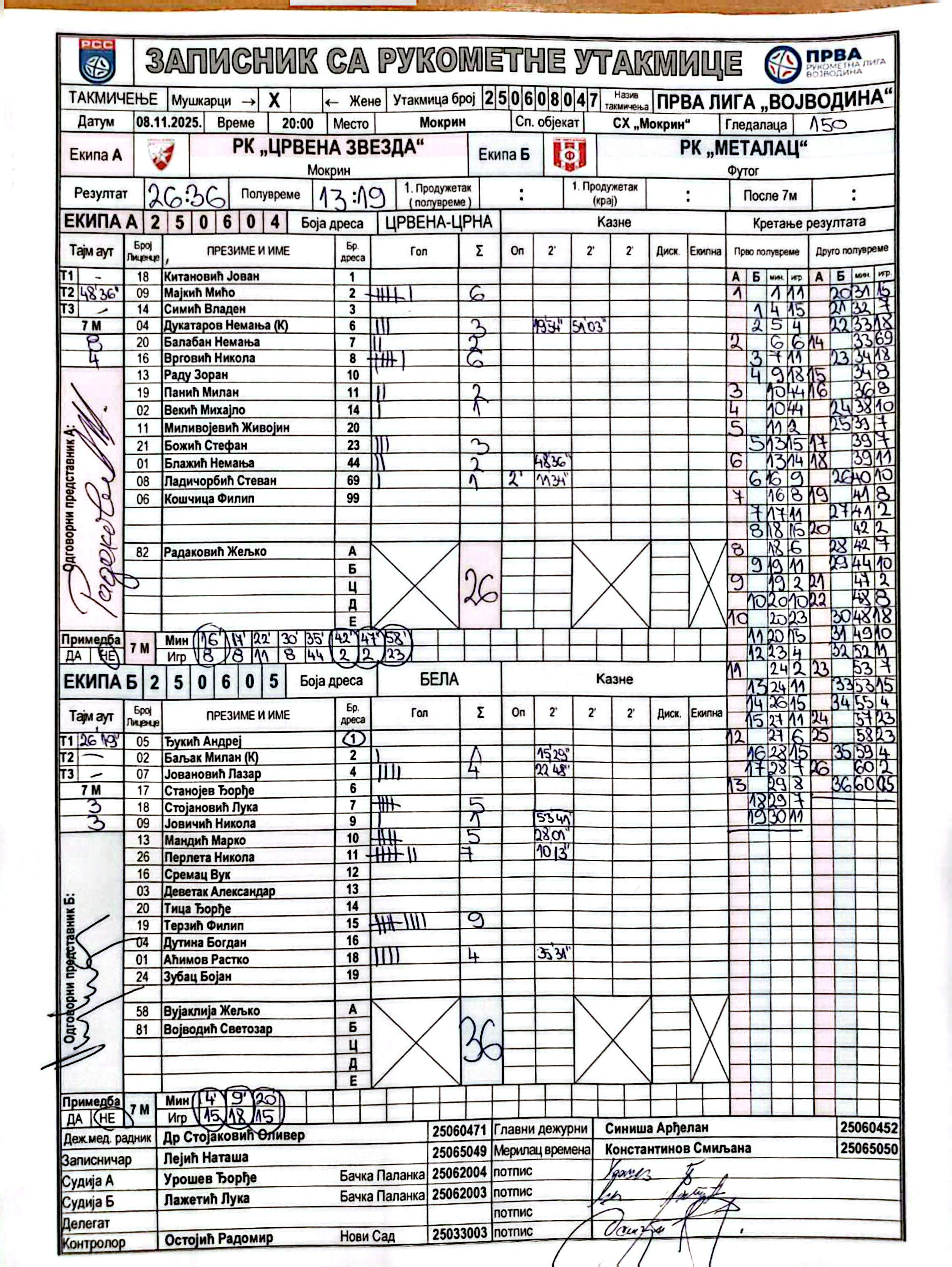 А судија: Ђорђе Урошев Б судија: Лука Лажетић Контролор: Радомир Остојић |