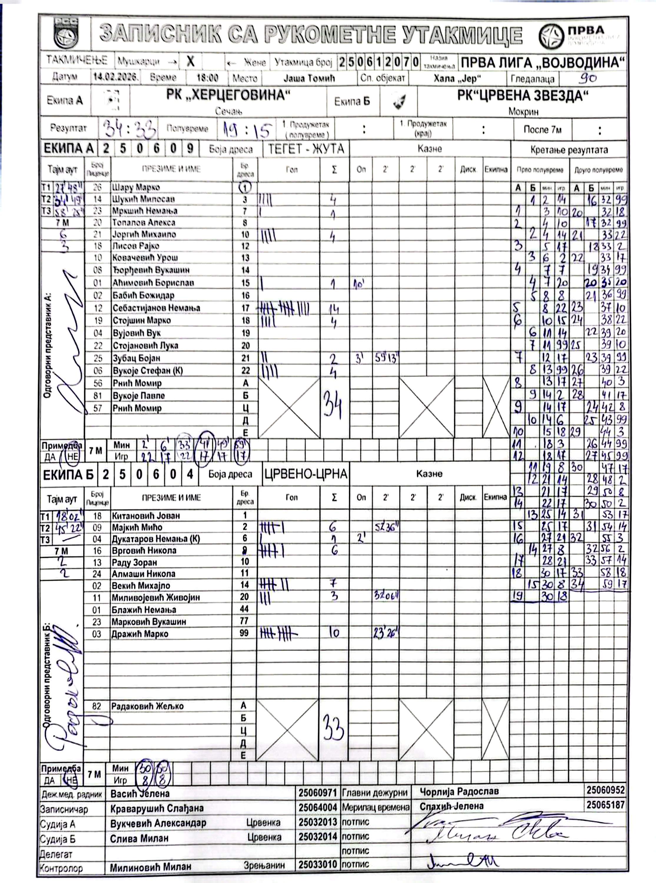 А судија: Александар Вукчевић Б судија: Милан Слива Контролор: Милан Милиновић |