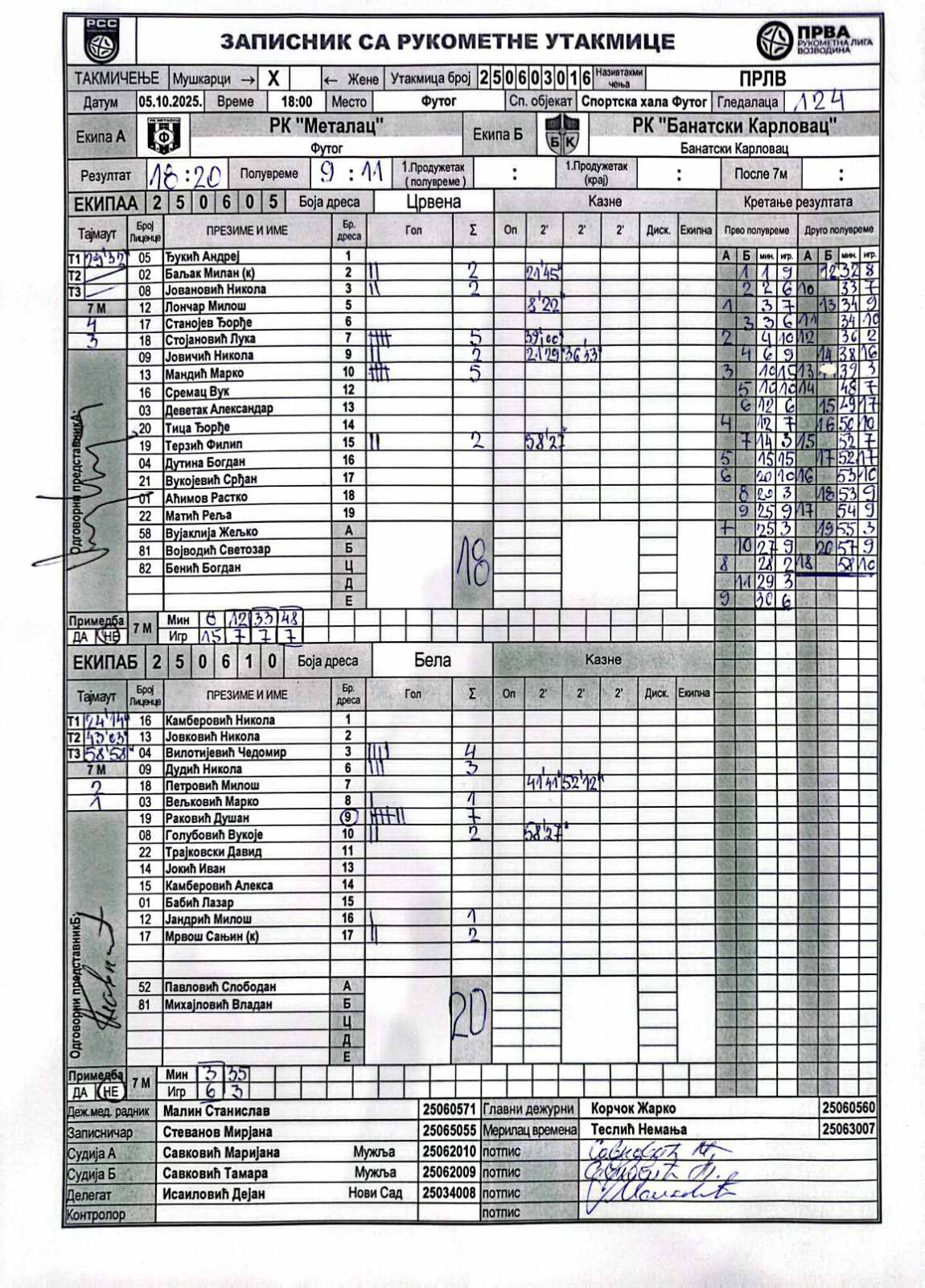 А судија: Маријана Савковић Б судија: Тамара Савковић Делегат: Дејан Исаиловић |