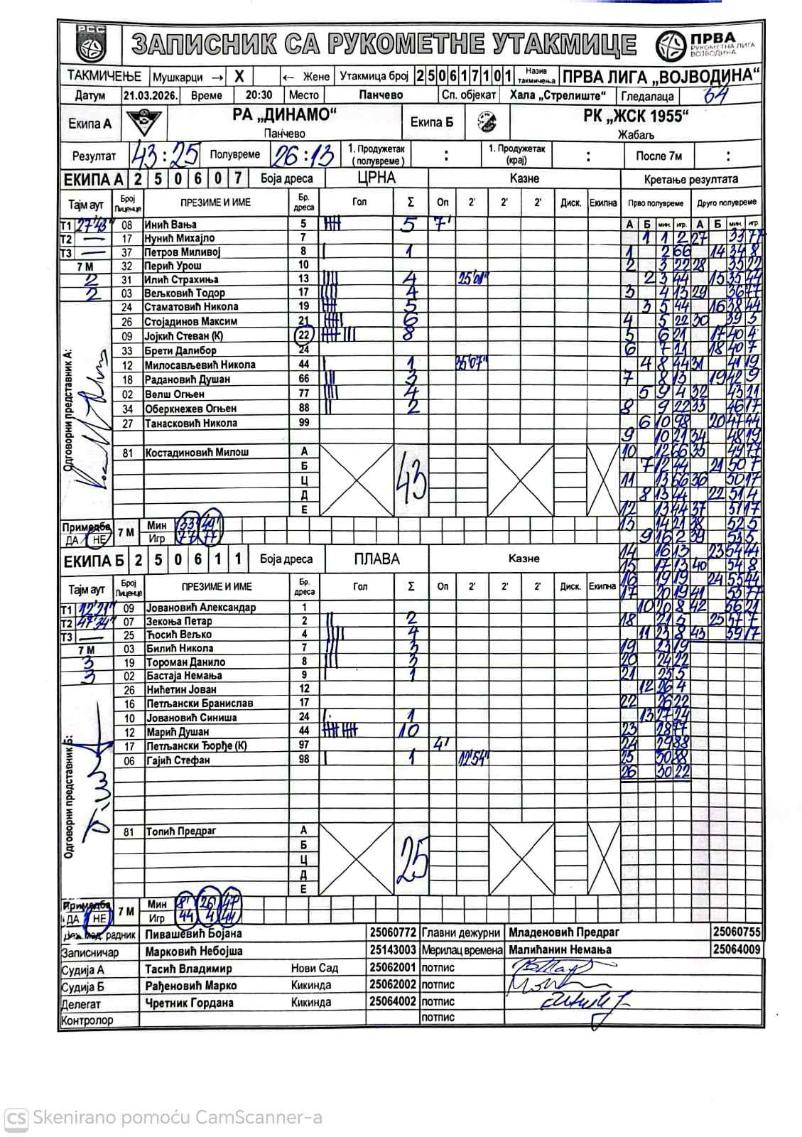 А судија: Владимир Тасић Б судија: Марко Рађеновић Делегат: Гордана Чретник |