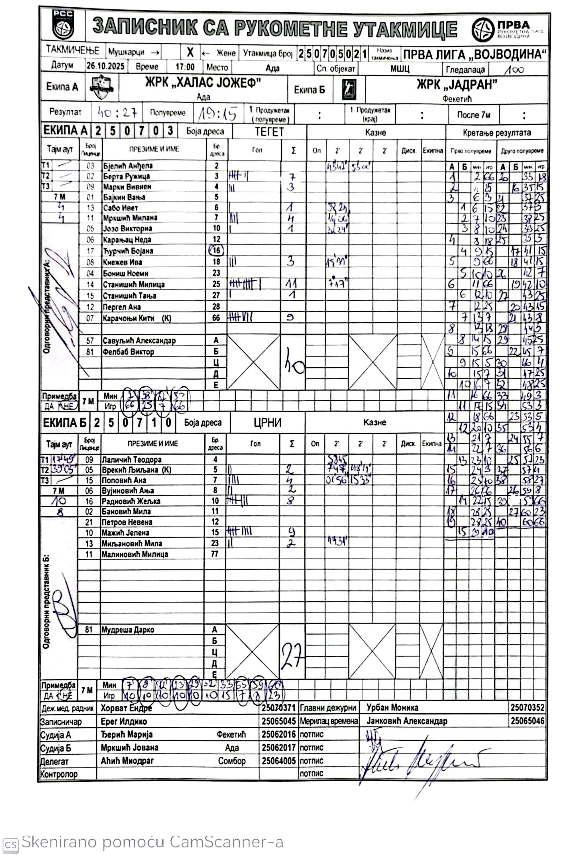 А судија: Марија Ђерић Б судија: Јована Мркшић Делегат: Миодраг Аћић |