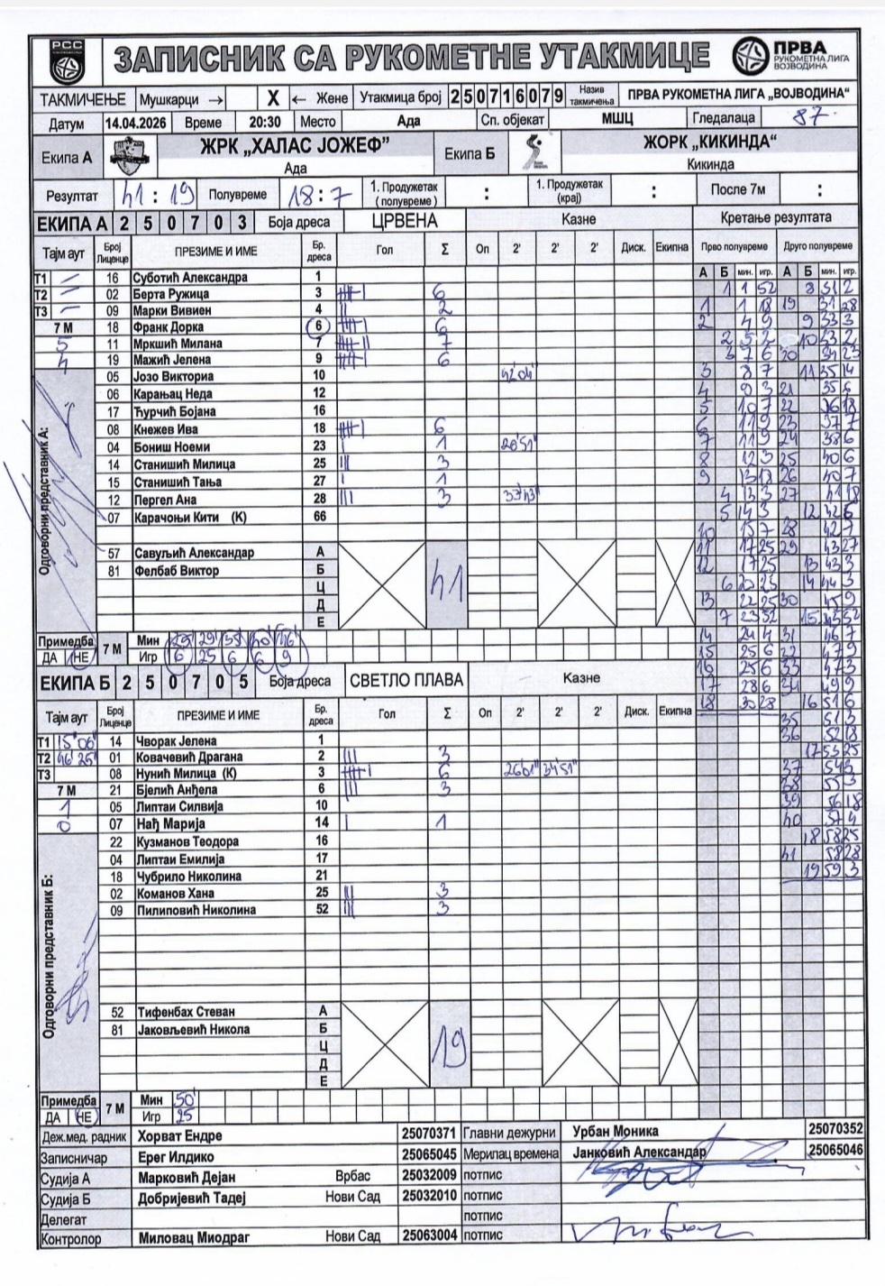 А судија: Дејан Марковић Б судија: Тадеј Добријевић Контролор: Миодраг Миловац |