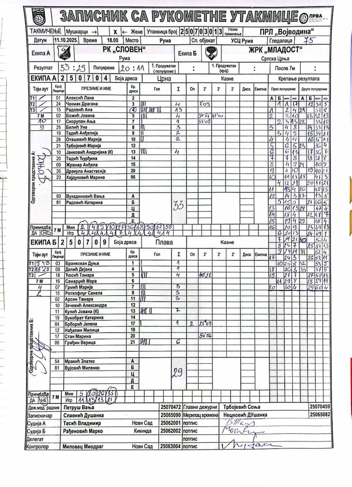 А судија: Владимир Тасић Б судија: Марко Рађеновић Контролор: Миодраг Миловац |