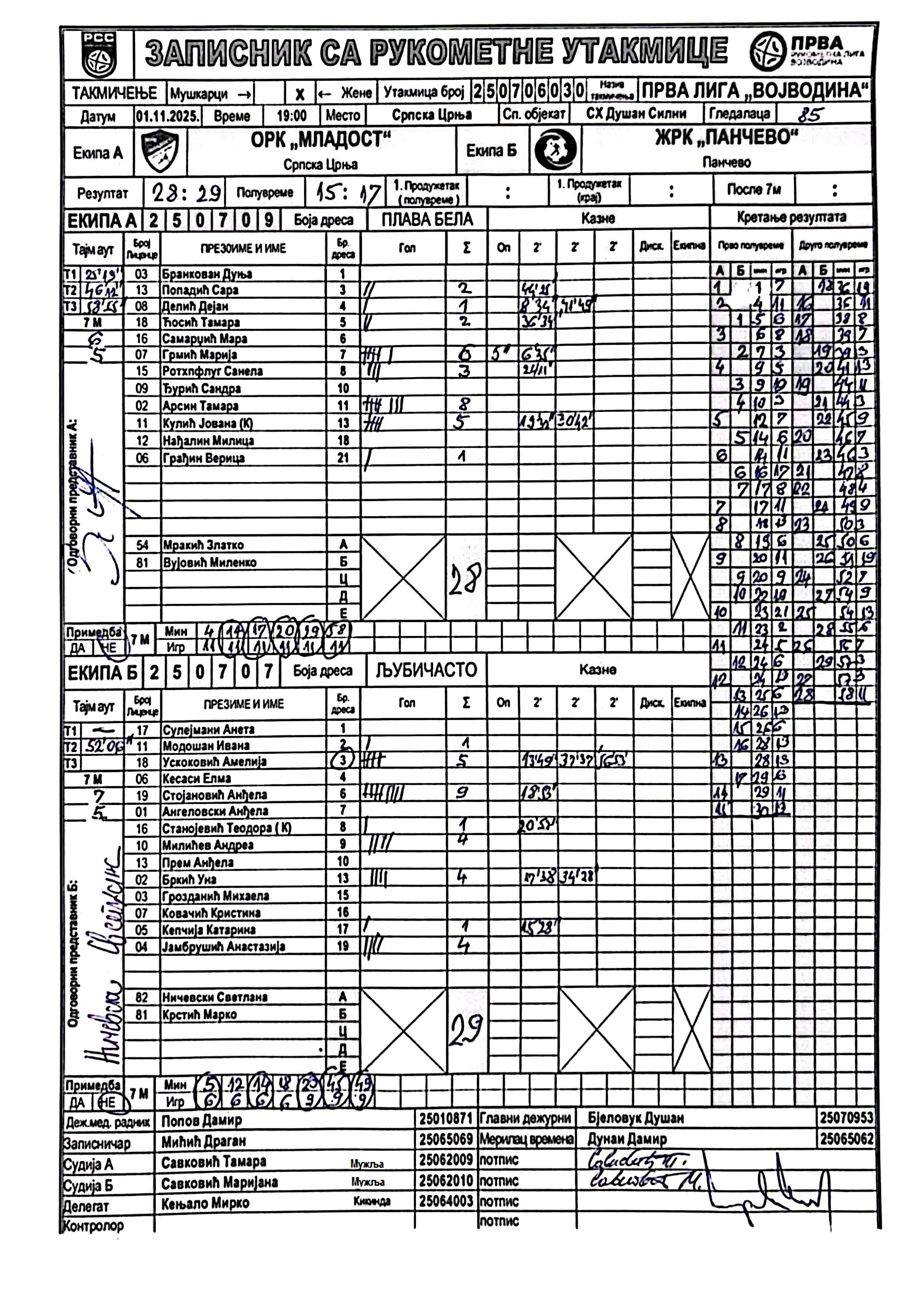 А судија: Тамара Савковић Б судија: Маријана Савковић Делегат: Мирко Кењало |