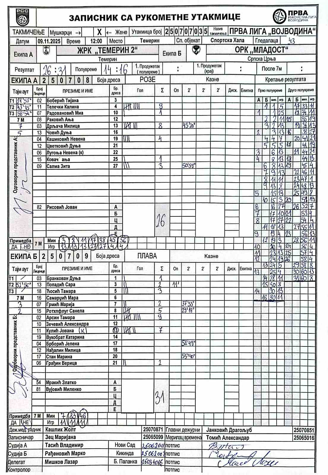 А судија: Владимир Тасић Б судија: Марко Рађеновић Делегат: Лазар Мишков |