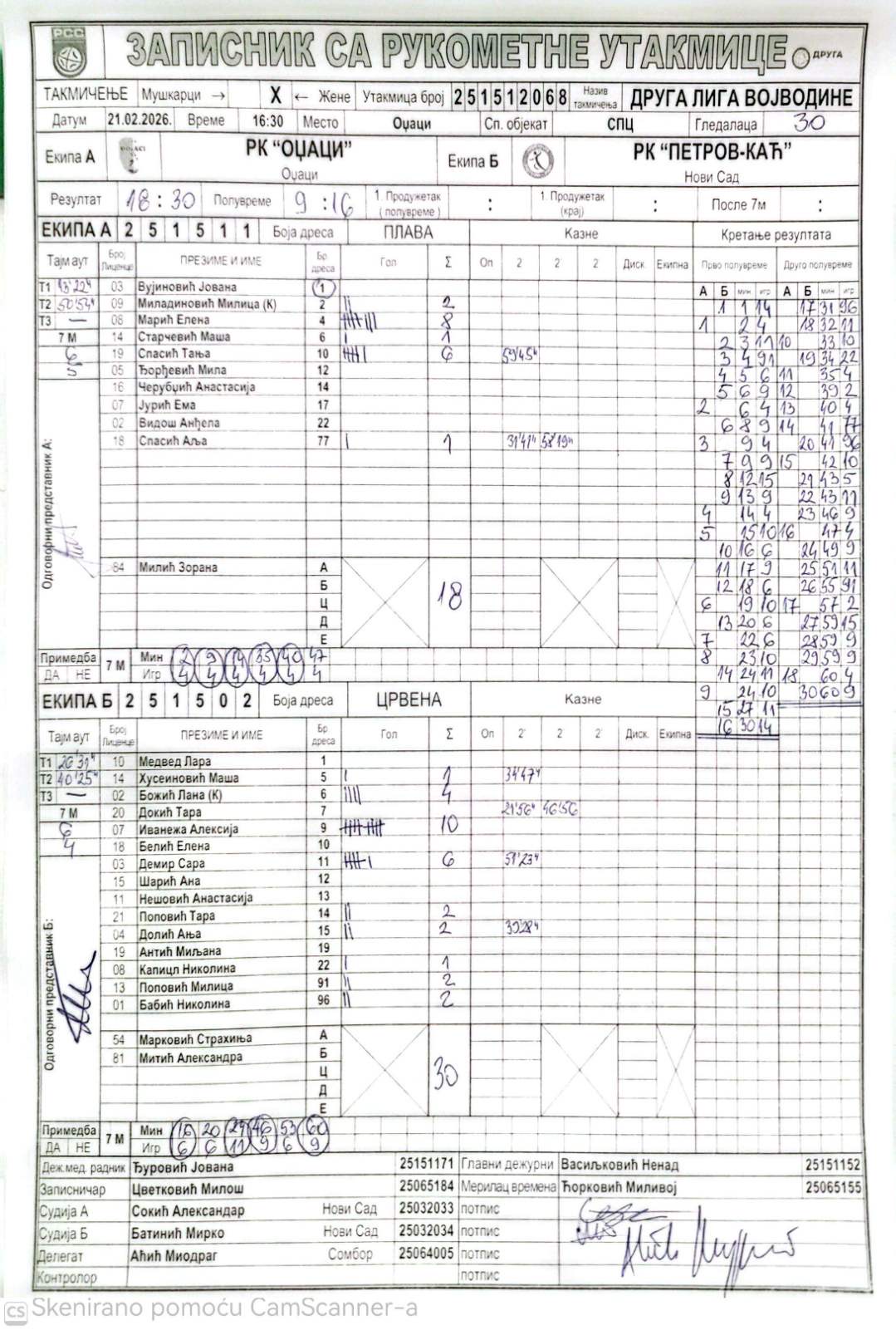 А судија: Александар Сокић Б судија: Марко Батинић Делегат: Миодраг Аћић |