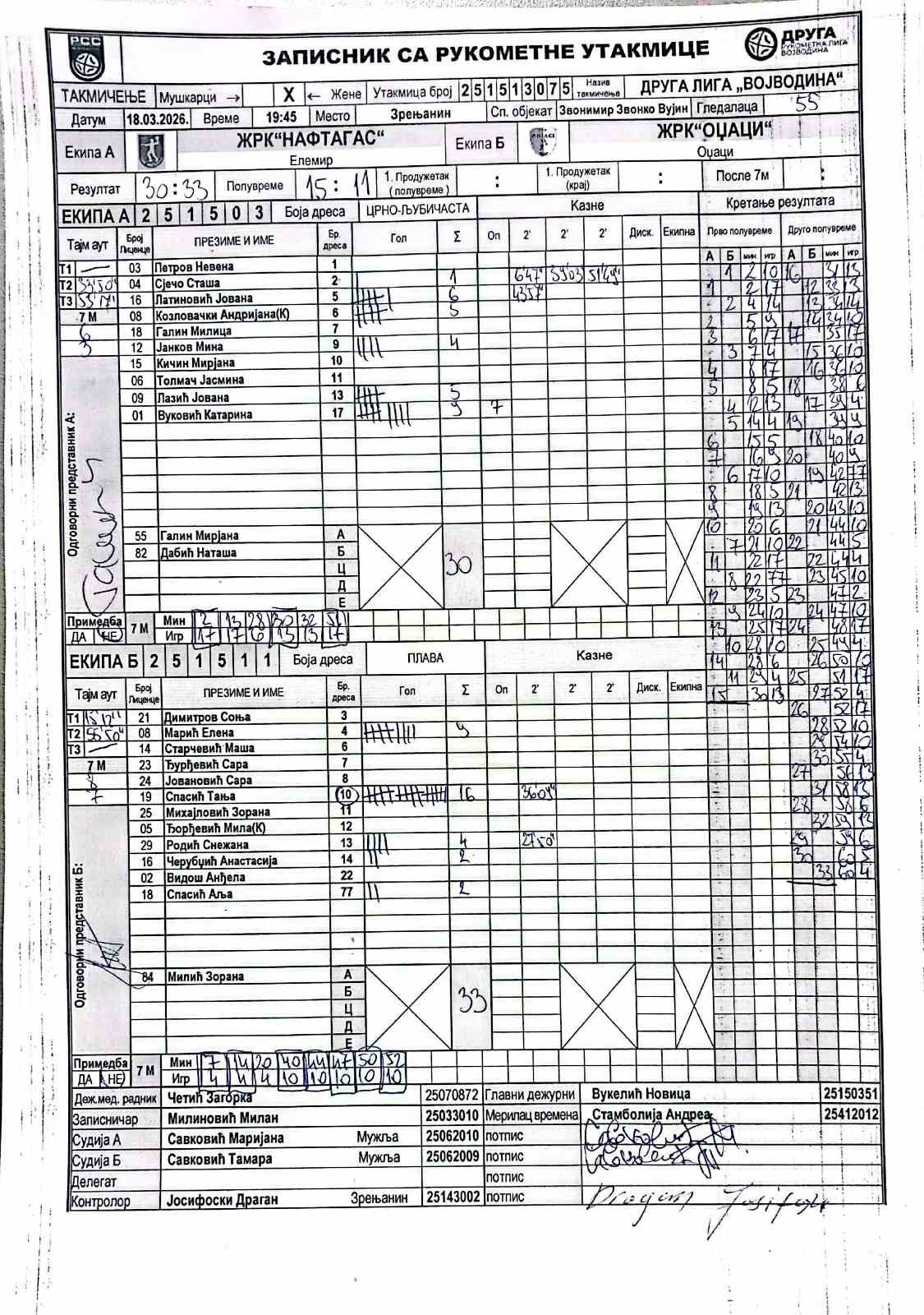 А судија: Маријана Савковић Б судија: Тамара Савковић Контролор: Драган Јосифоски |
