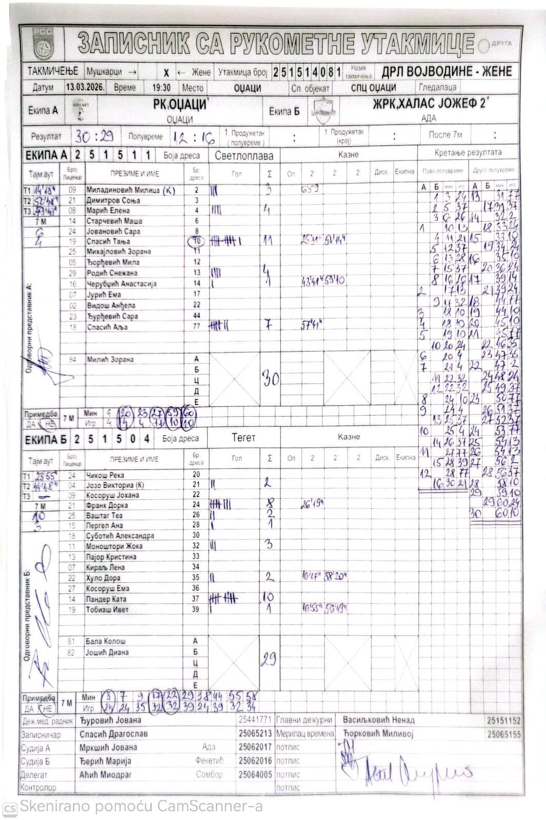А судија: Јована Мркшић Б судија: Марија Ђерић Делегат: Миодраг Аћић |