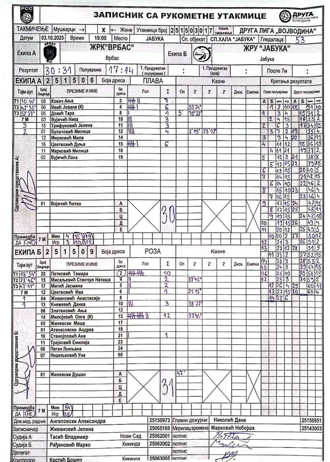 А судија: Владимир Тасић Б судија: Марко Рађеновић Контролор: Бошко Крстић |
