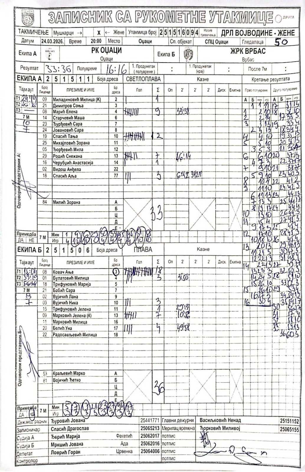 А судија: Марија Ђерић Б судија: Јована Мркшић Делегат: Горан Ловрић |