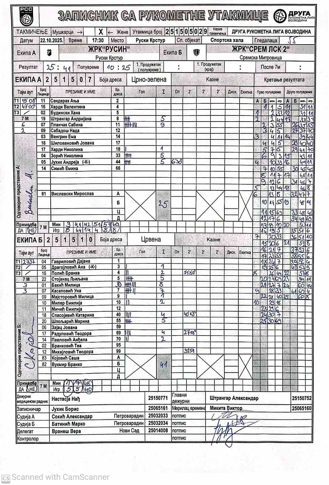 А судија: Александар Сокић Б судија: Марко Батинић Делегат: Вера Вранеш |