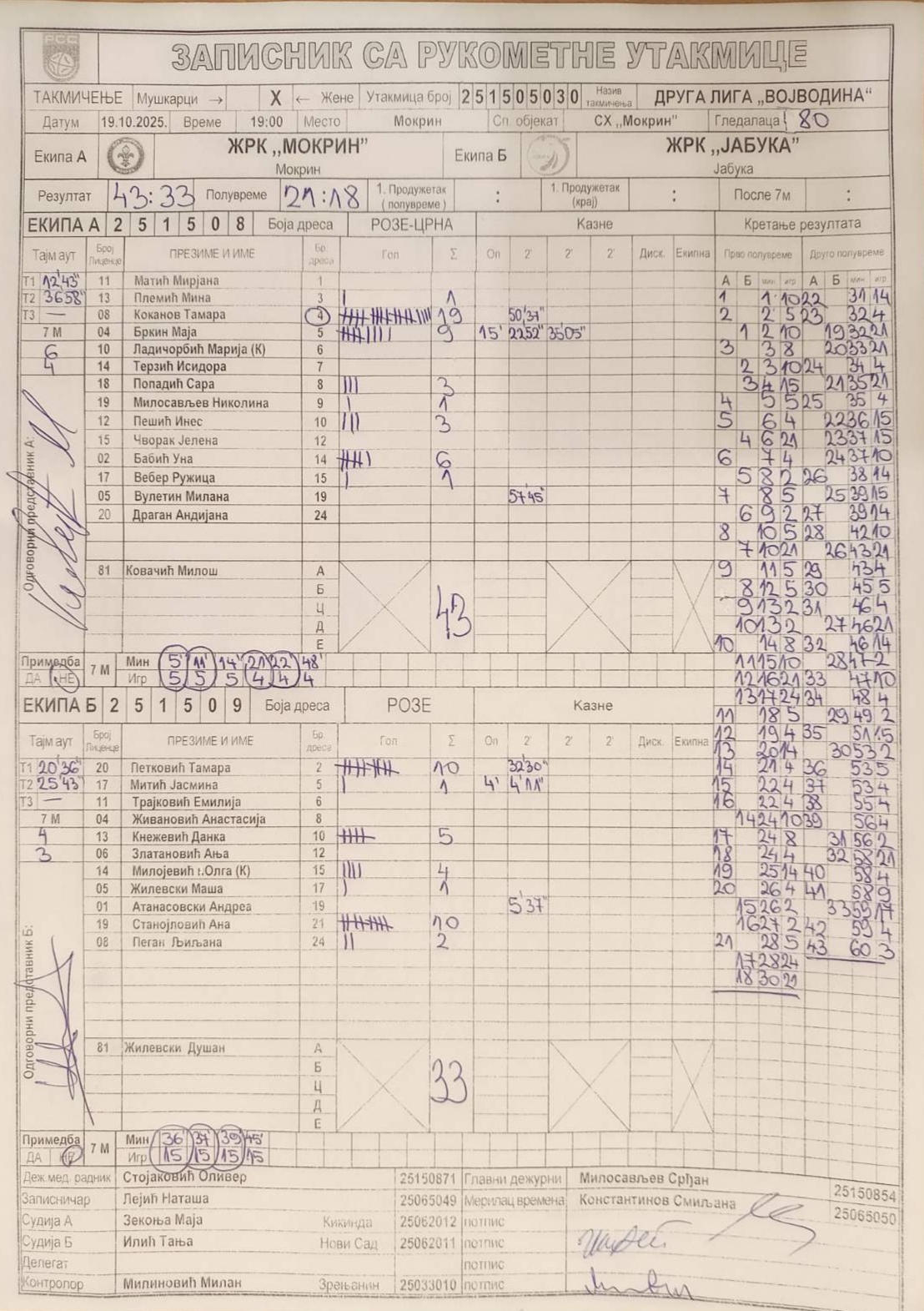 А судија: Маја Зекоња Б судија: Тања Илић Контролор: Милан Милиновић |