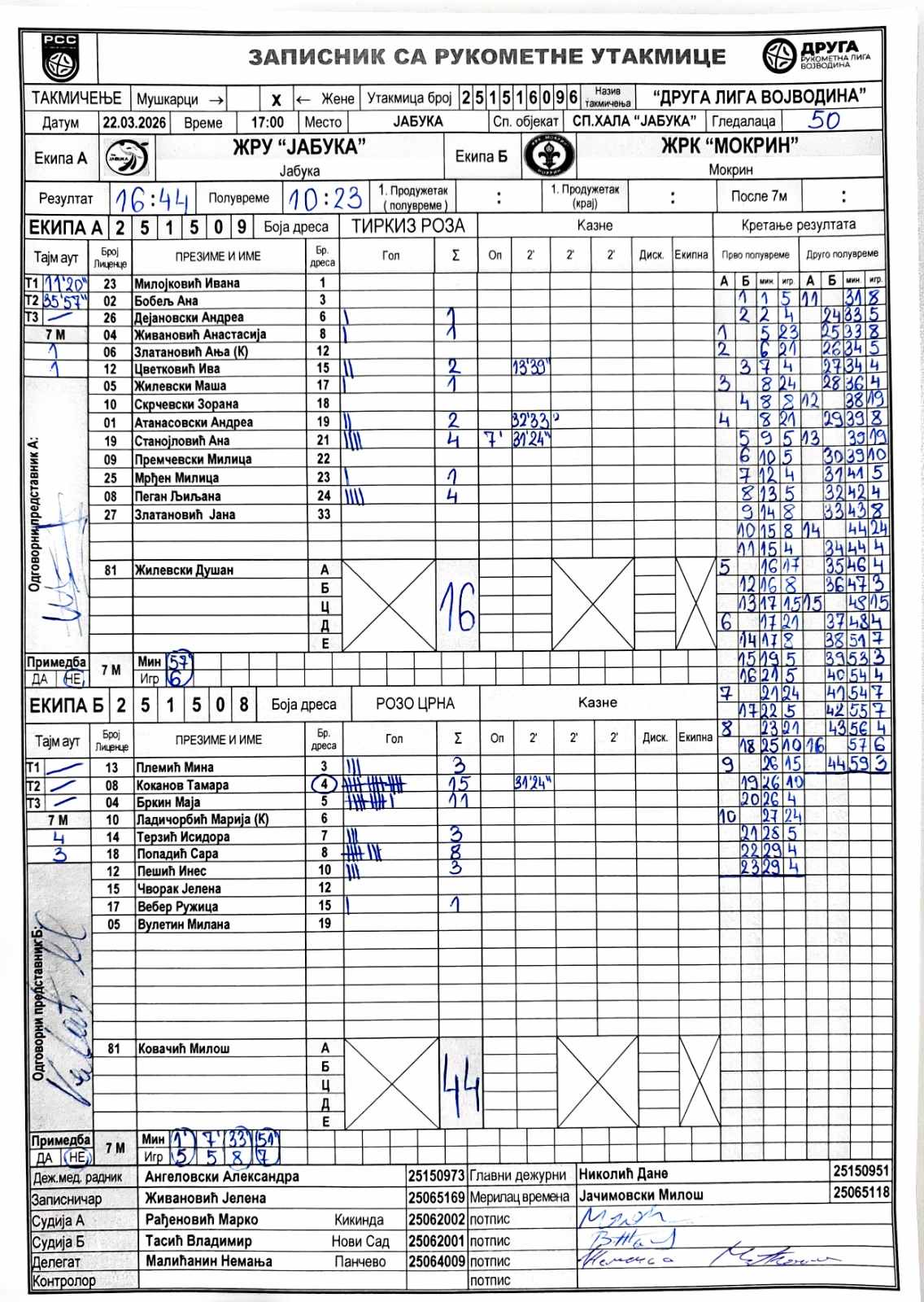 А судија: Марко Рађеновић Б судија: Владимир Тасић Делегат: Немања Малићанин |