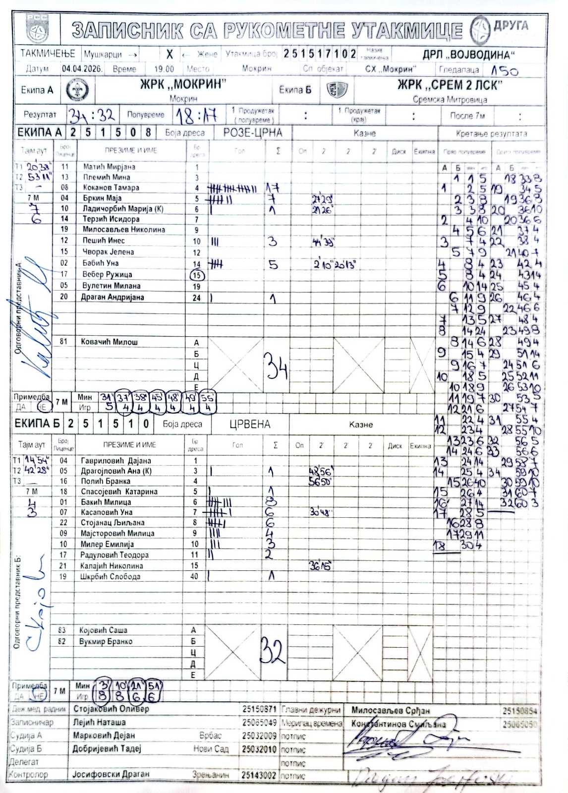 А судија: Дејан Марковић Б судија: Тадеј Добријевић Контролор: Драган Јосифоски |