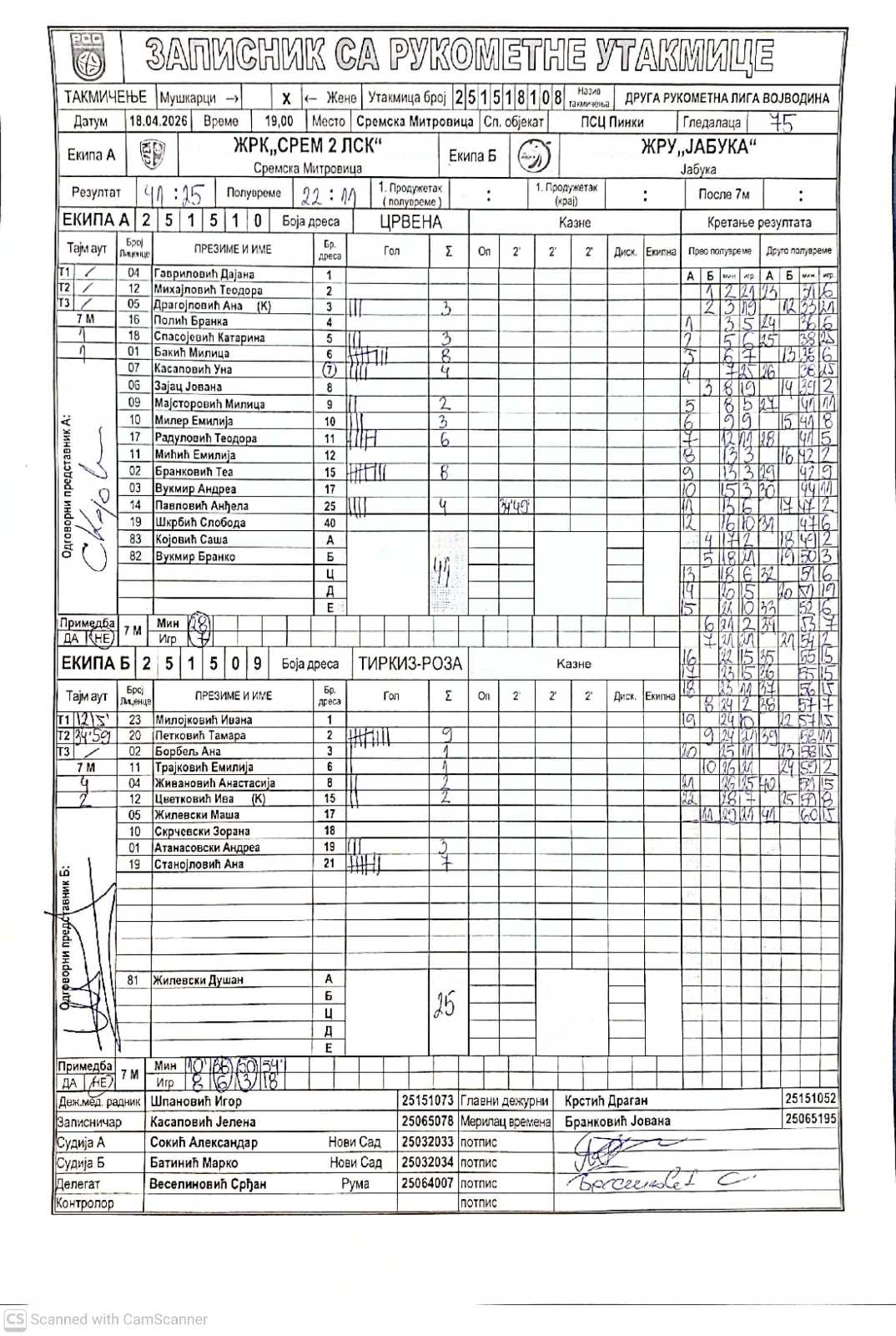 Срем 2 ЛСК-Јабука (ж)
