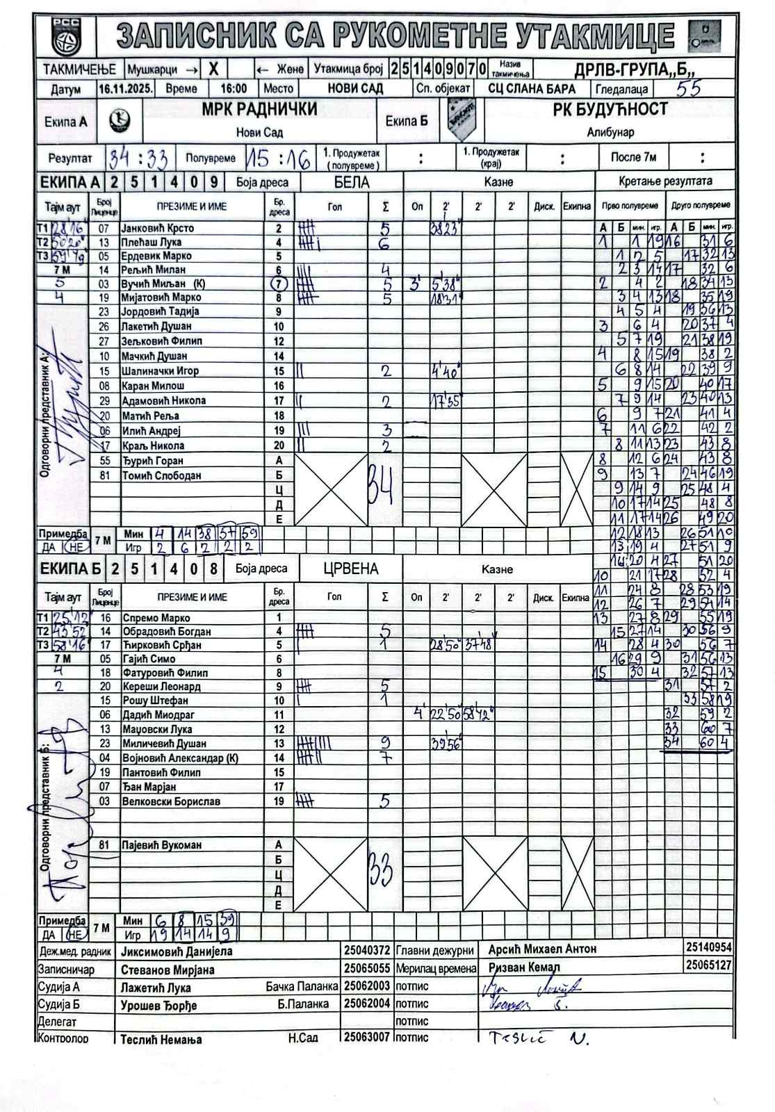 А судија: Лука Лажетић Б судија: Ђорђе Урошев Контролор: Немања Теслић |