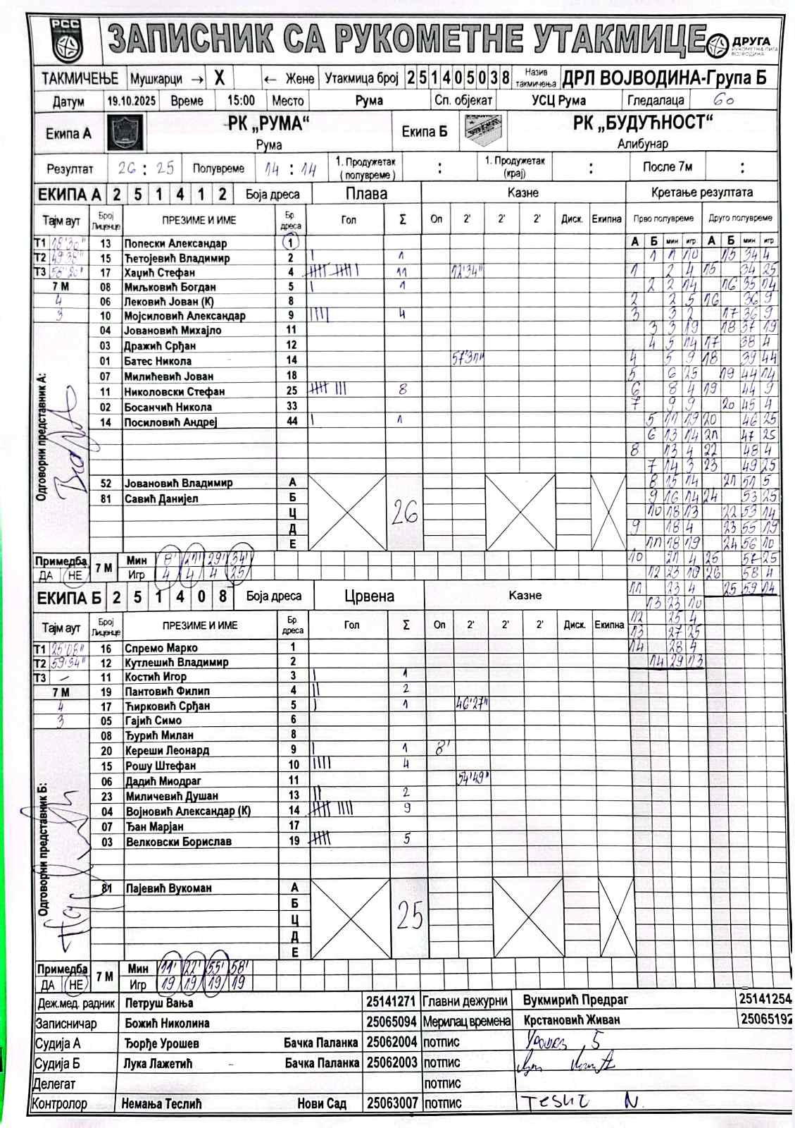 А судија: Ђорђе Урошев Б судија: Лука Лажетић Контролор: Немања Теслић |