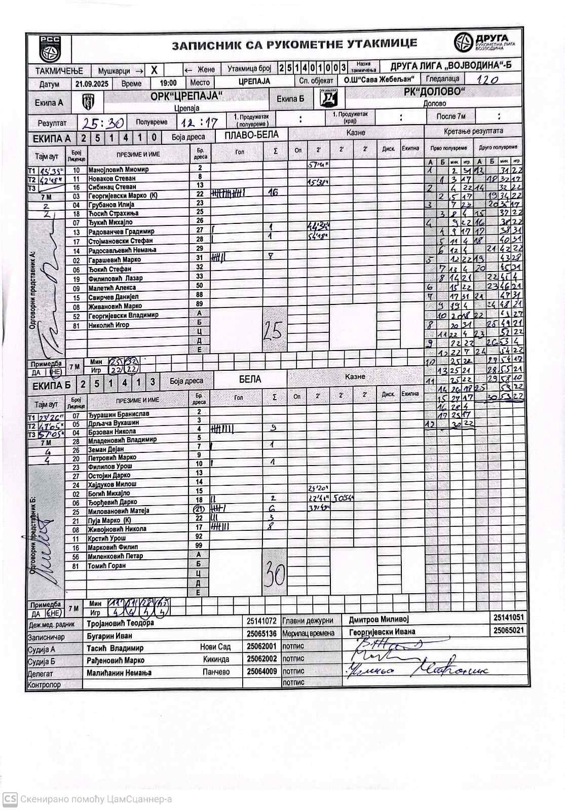 А судија: Владимир Тасић Б судија: Марко Рађеновић Делегат: Немања Малићанин |