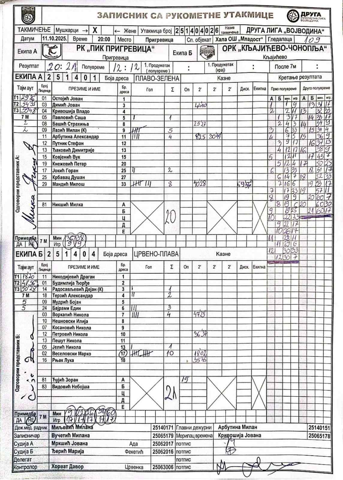 А судија: Јована Мркшић Б судија: Марија Ђерић Контролор: Давор Хорват |