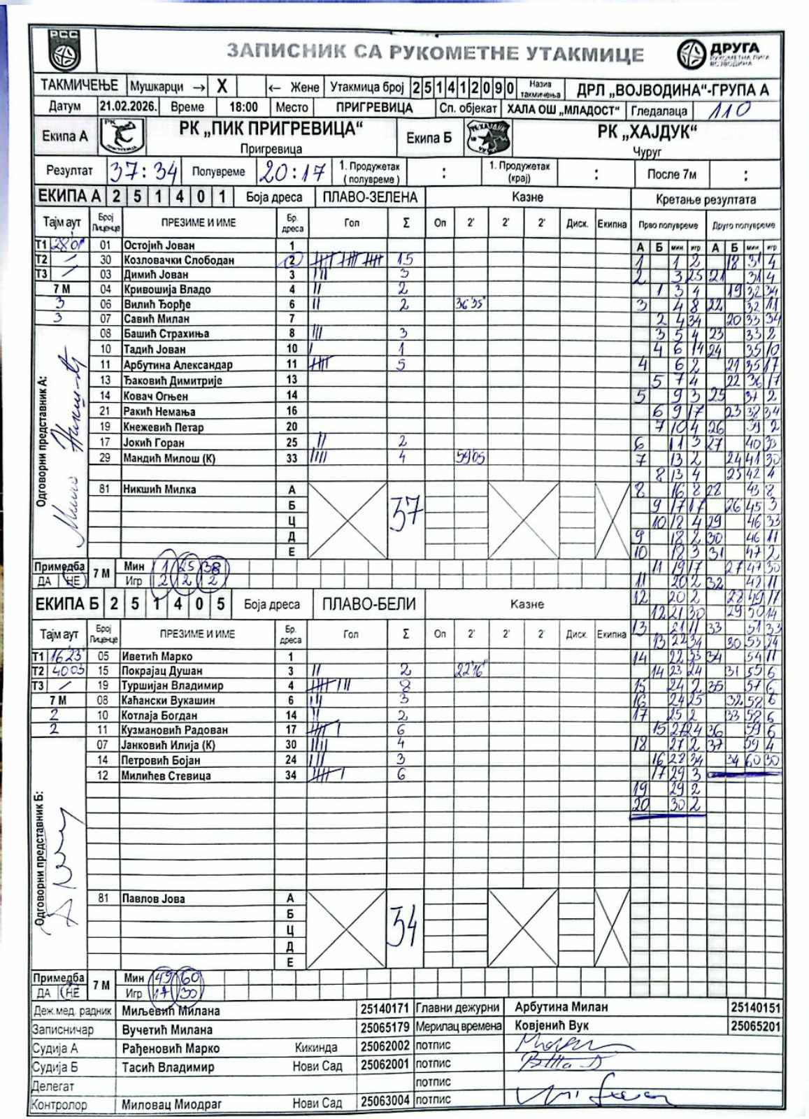 А судија: Марко Рађеновић Б судија: Владимир Тасић Контролор: Миодраг Миловац |