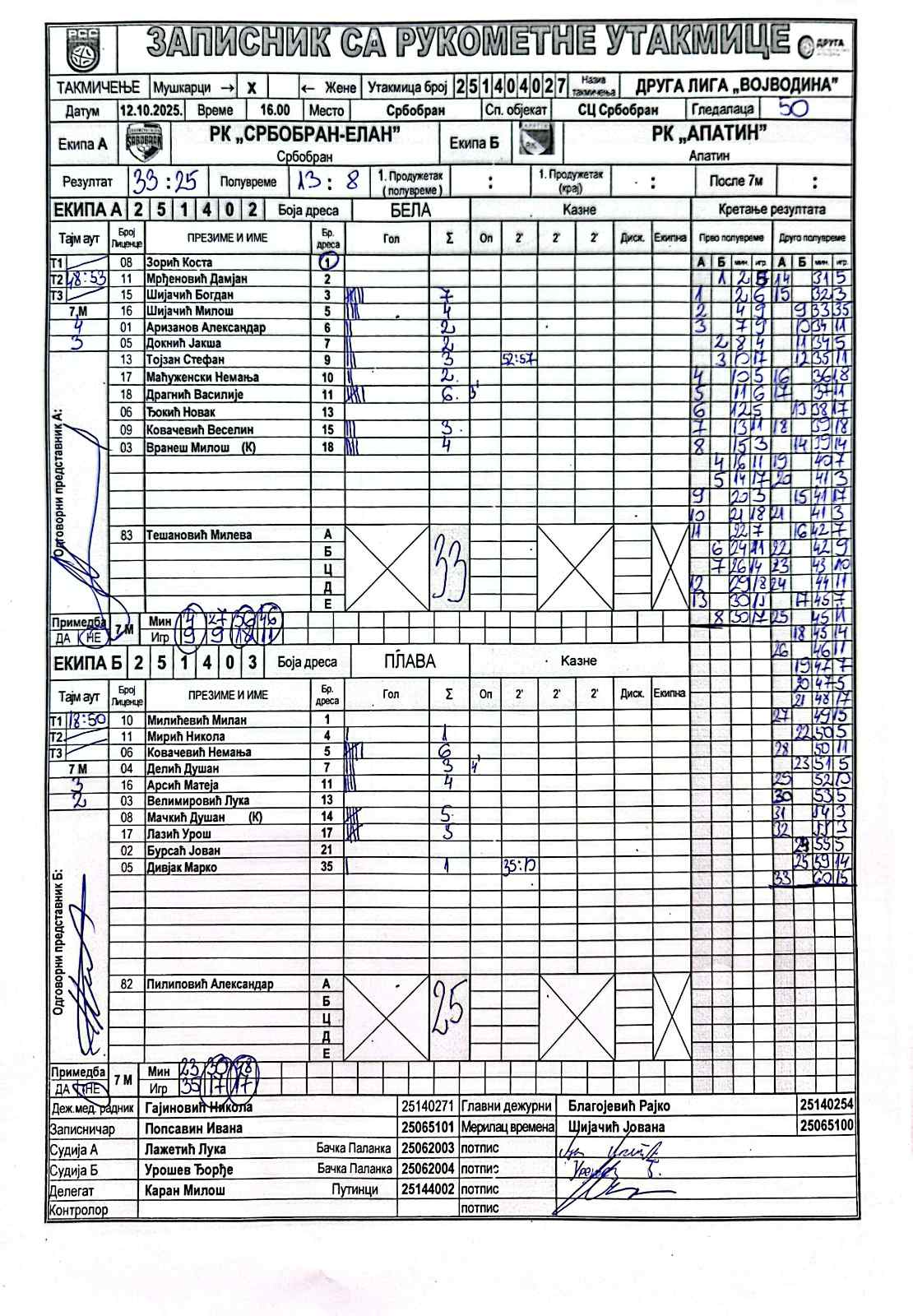 А судија: Лука Лажетић Б судија: Ђорђе Урошев Делегат: Милош Каран |