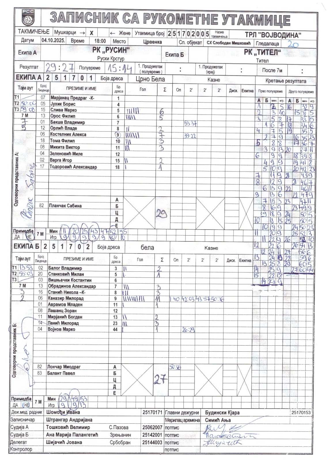 А судија: Велимир Тошковић Б судија: Ана Марија Палангетић Делегат: Јована Шијачић |