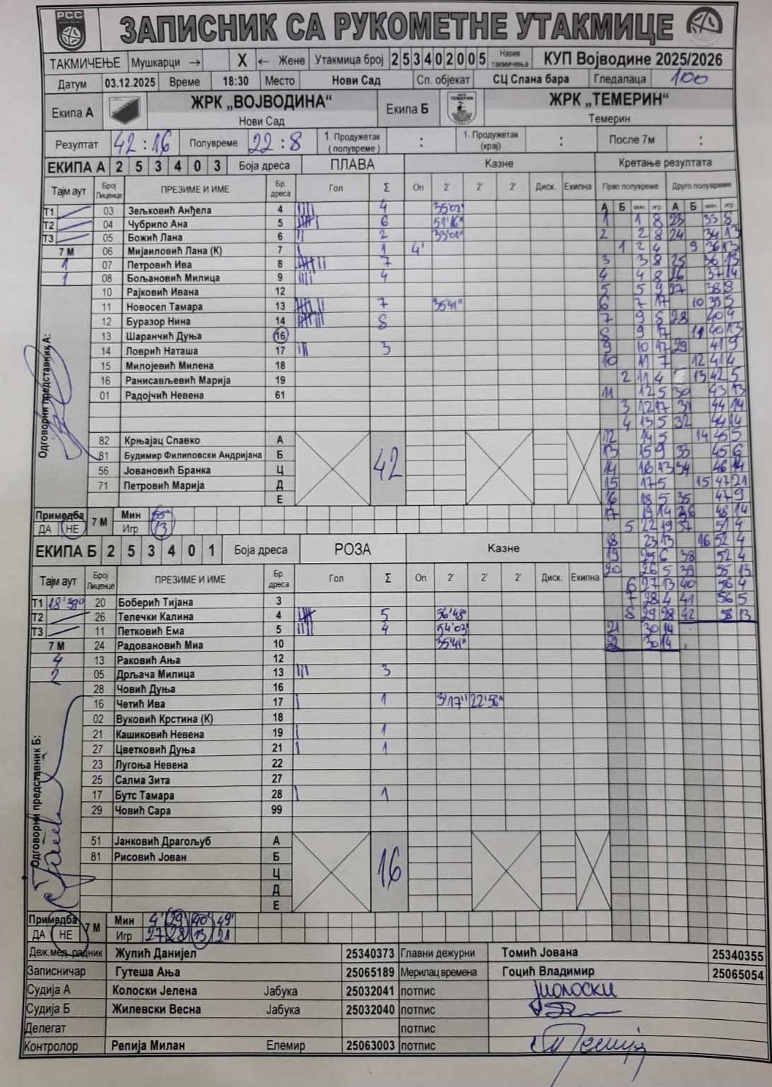 Службена лица, записник и број гледалаца
