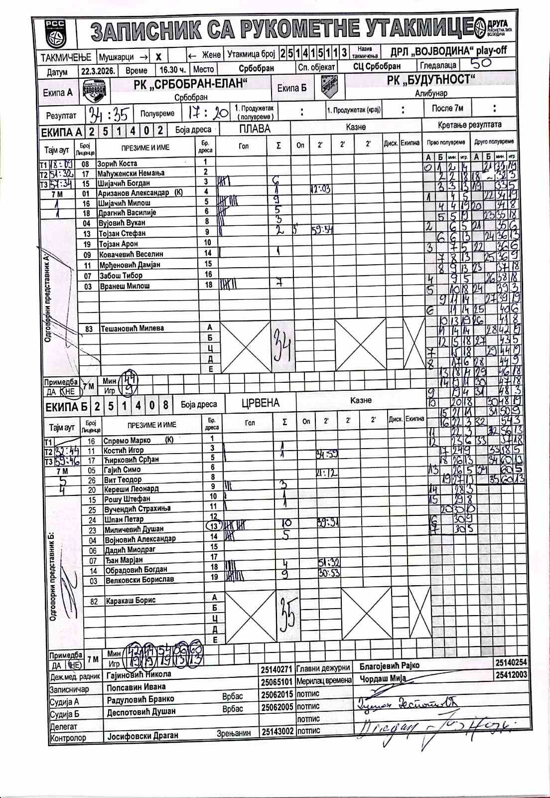 А судија: Бранко Радуловић Б судија: Душан Деспотовић Контролор: Драган Јосифоски |