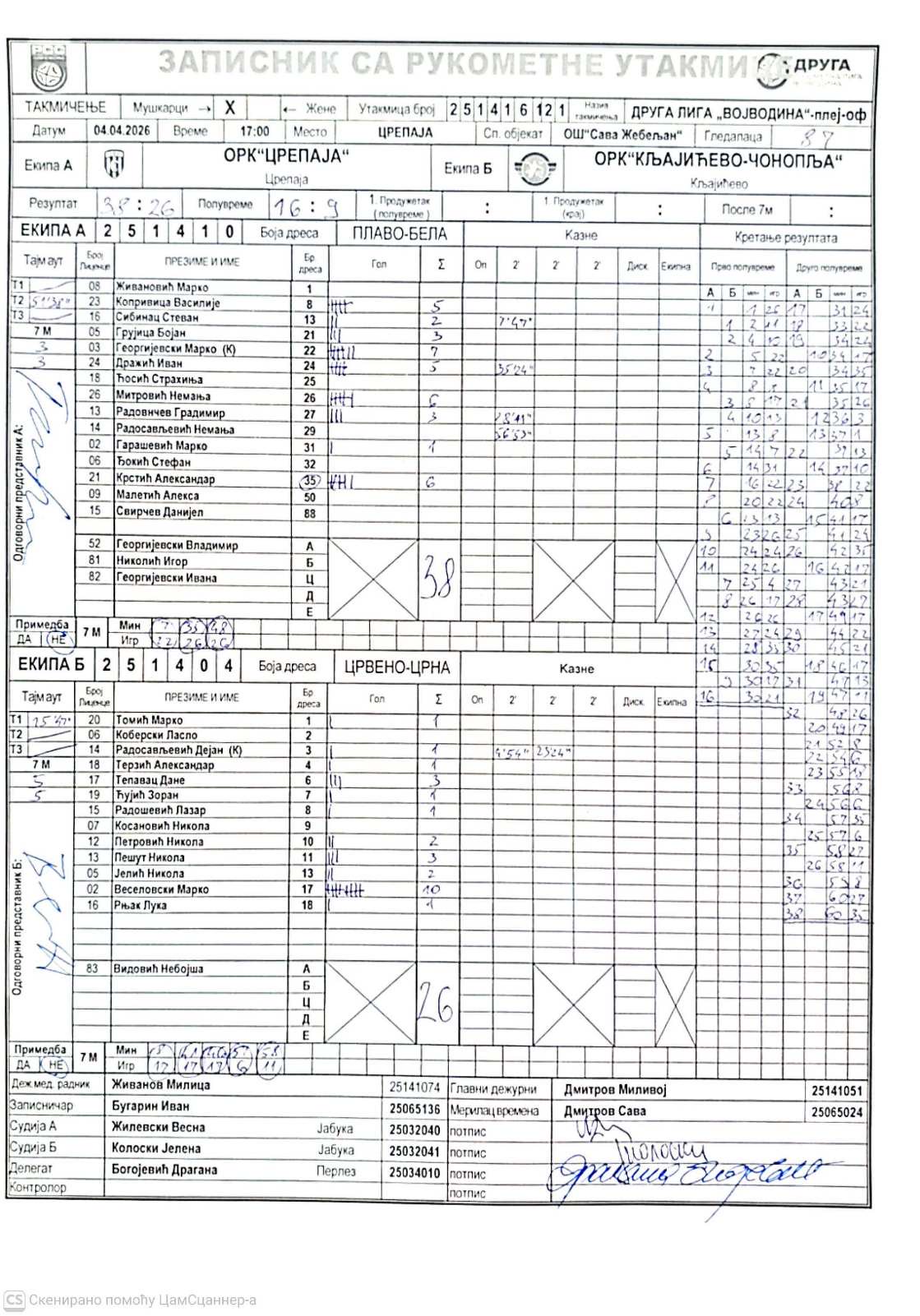 Службена лица, записник и број гледалаца