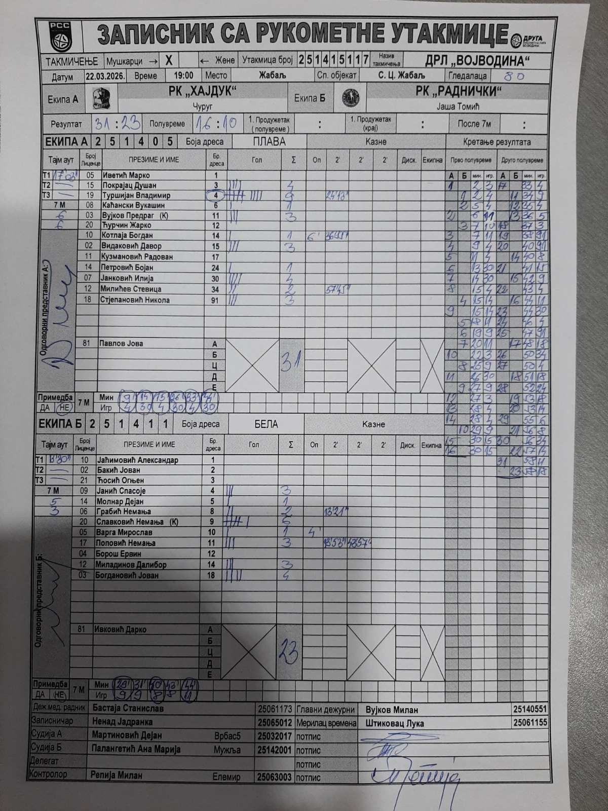 А судија: Дејан Мартиновић Б судија: Ана Марија Палангетић Контролор: Милан Репија |