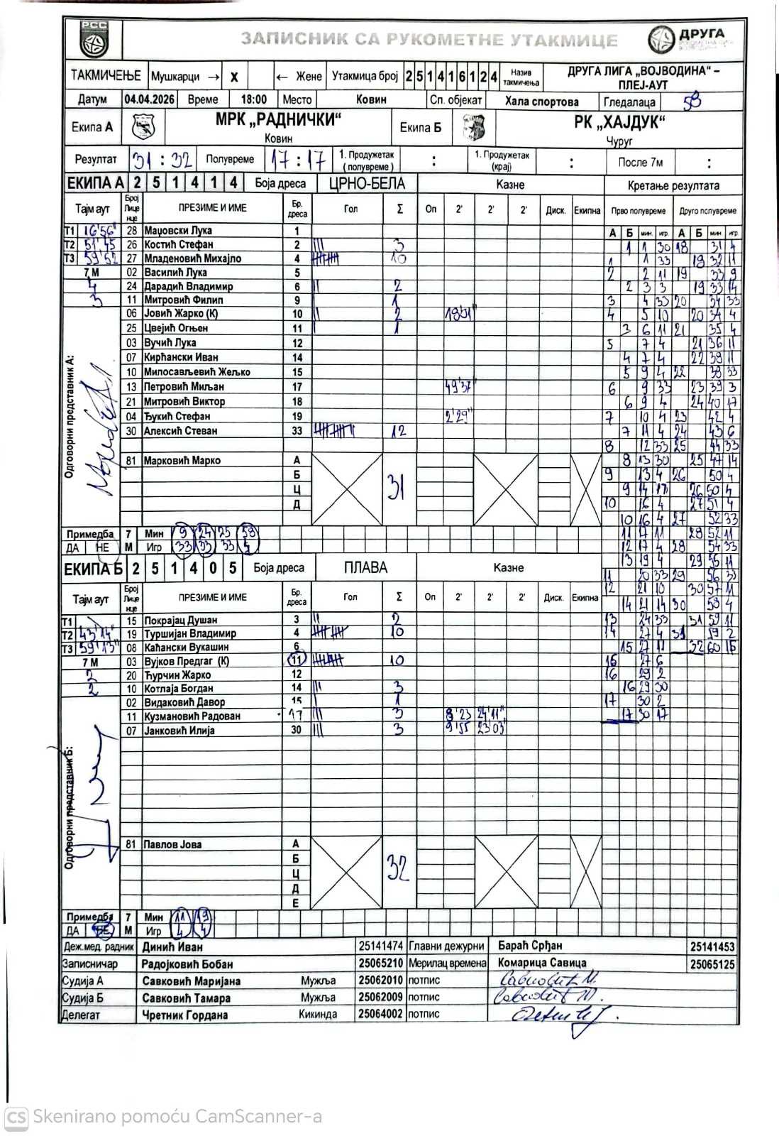 А судија: Маријана Савковић Б судија: Тамара Савковић Делегат: Гордана Чретник |