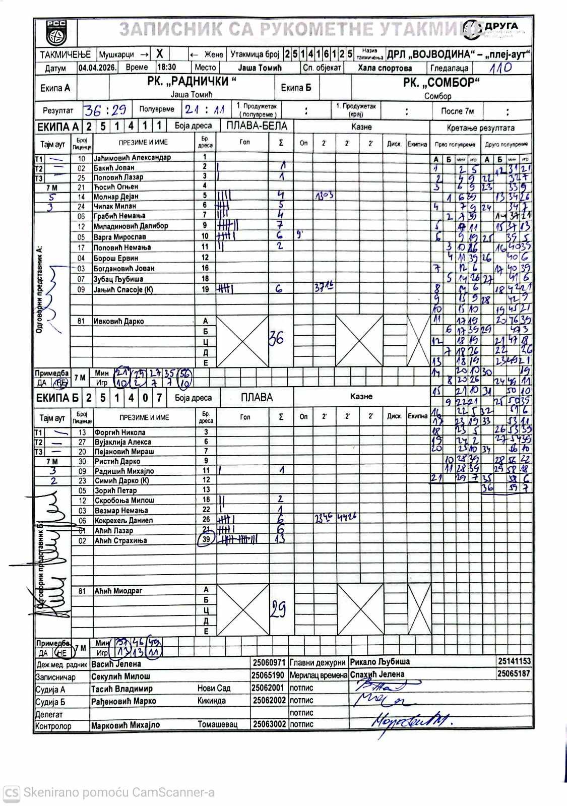 А судија: Владимир Тасић Б судија: Марко Рађеновић Контролор: Михајло Марковић |