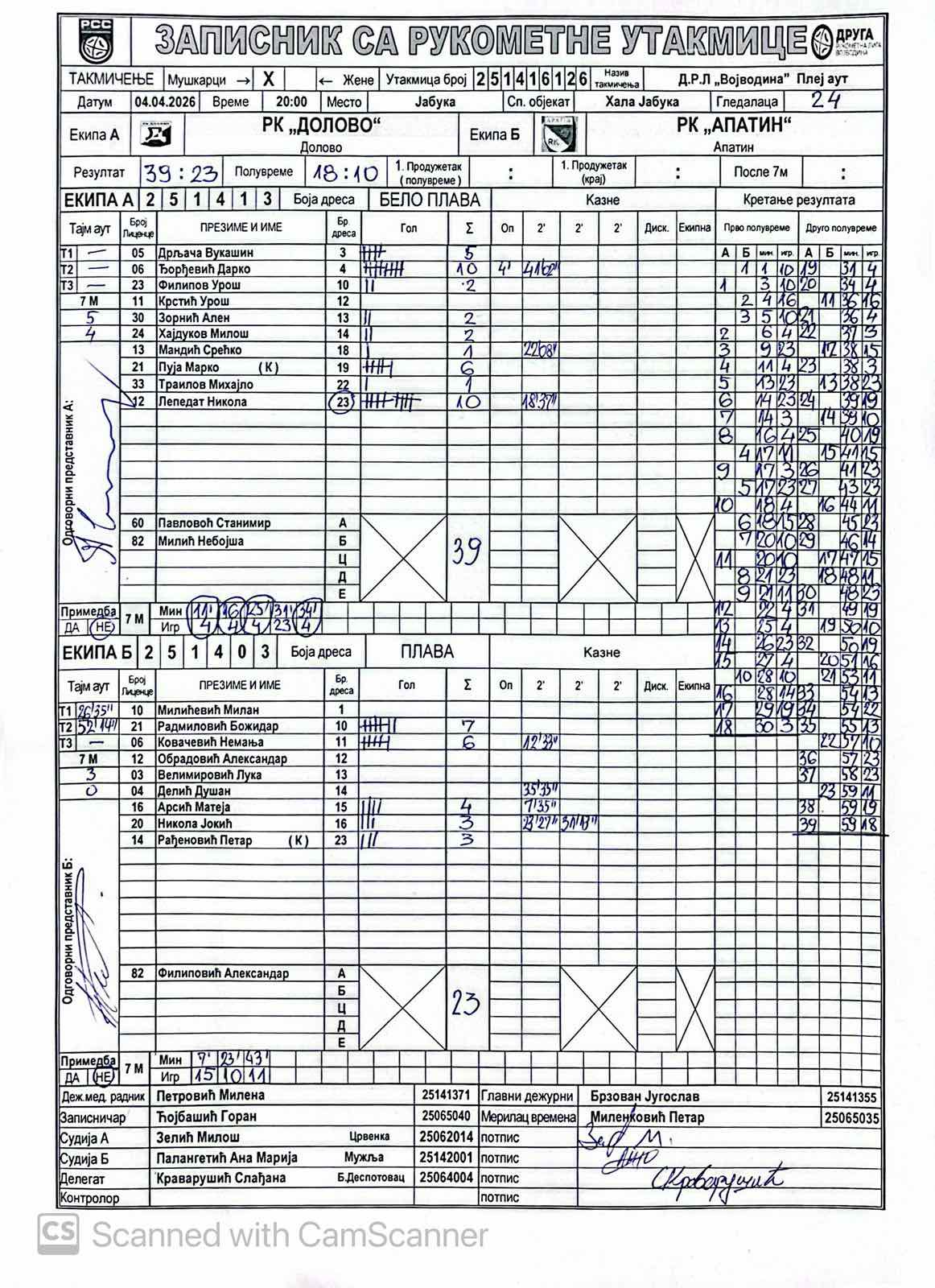 А судија: Милош Зелић Б судија: Ана Марија Палангетић Делегат: Слађана Краварушић |