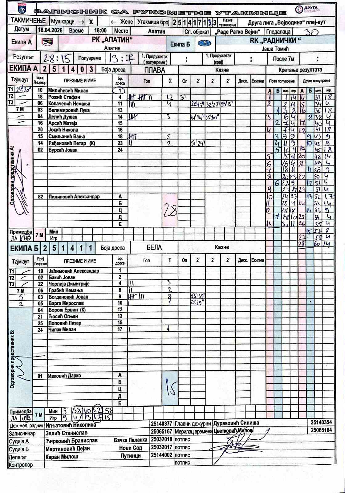 А судија: Бранислав Ћирковић Б судија: Дејан Мартиновић Делегат: Милош Каран |