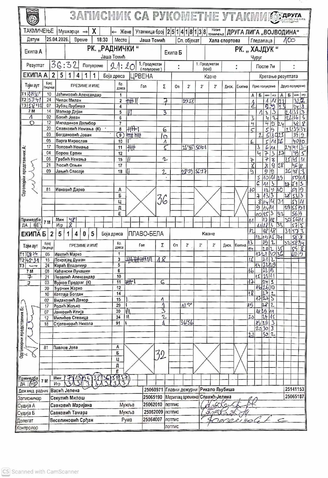 А судија: Маријана Савковић Б судија: Тамара Савковић Делегат: Срђан Веселиновић |
