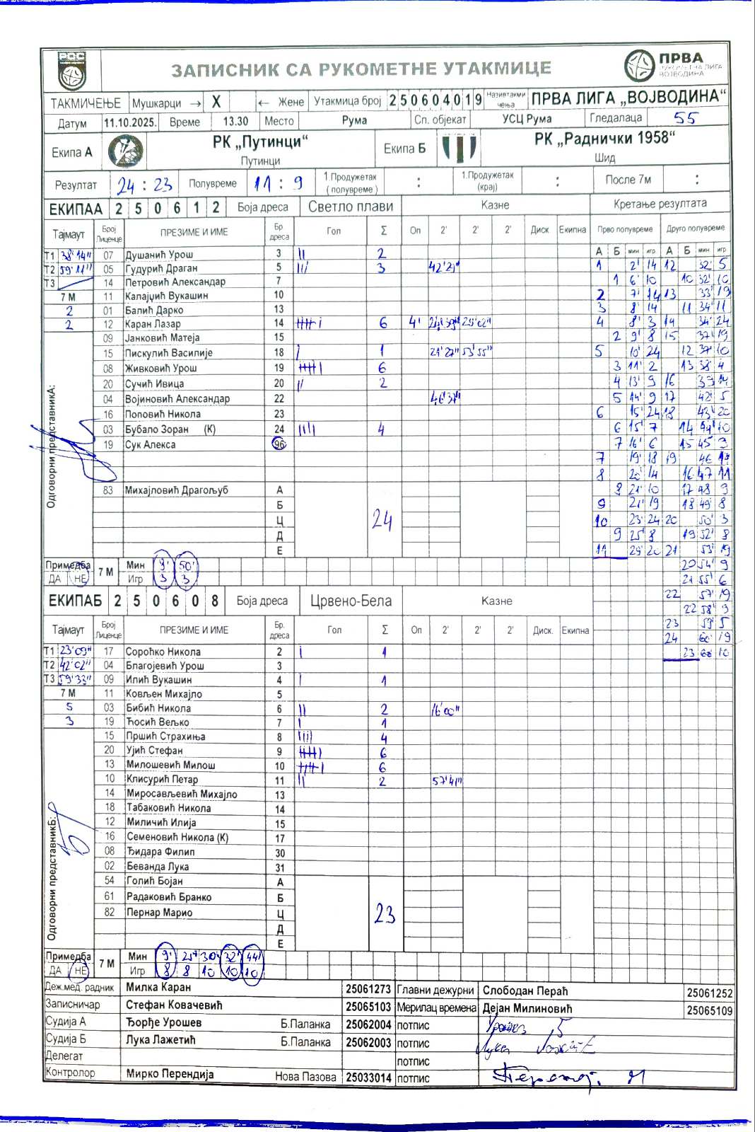 А судија: Ђорђе Урошев Б судија: Лука Лажетић Контролор: Мирко Перендија |
