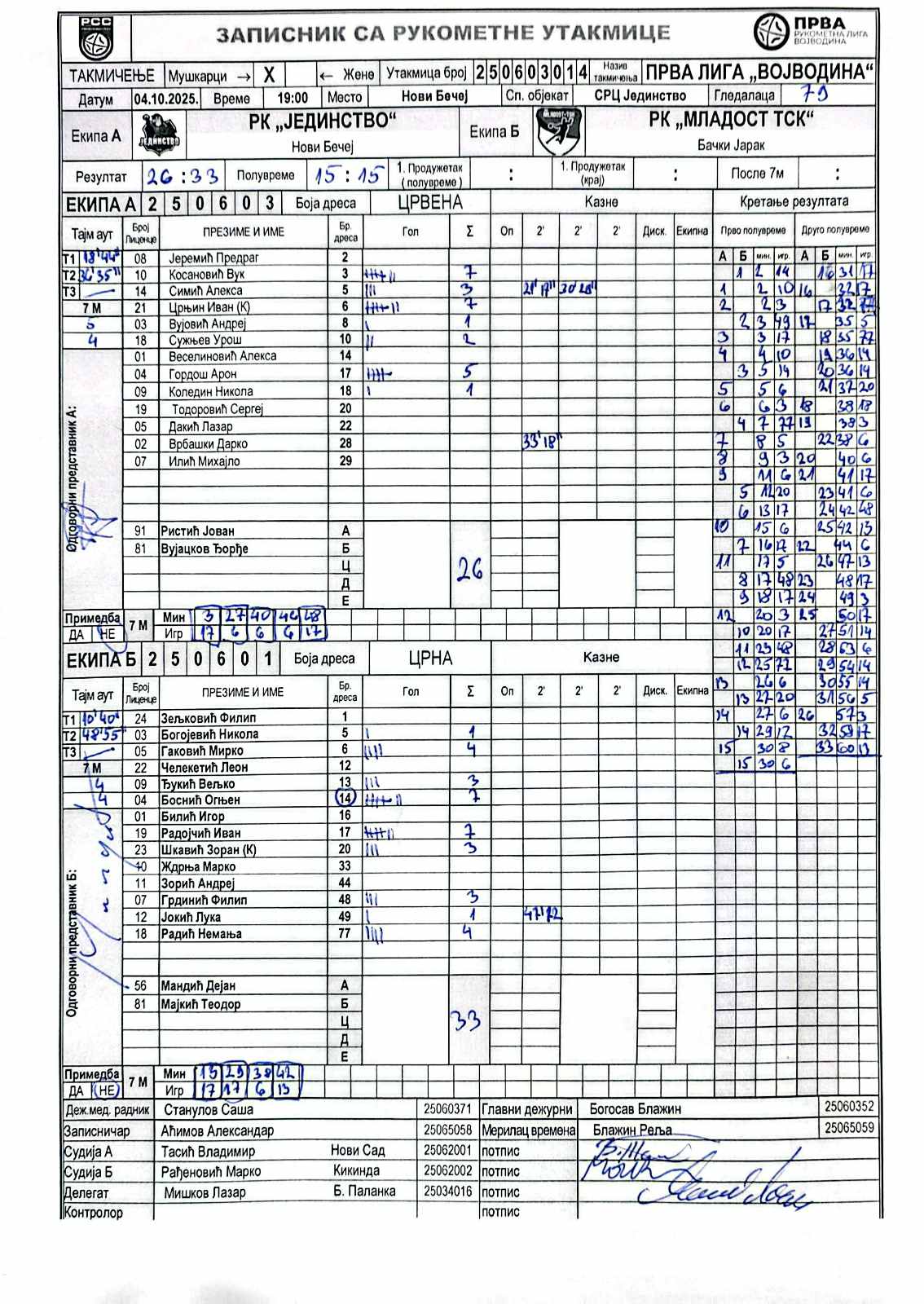 А судија: Владимир Тасић Б судија: Марко Рађеновић Делегат: Лазар Мишков |