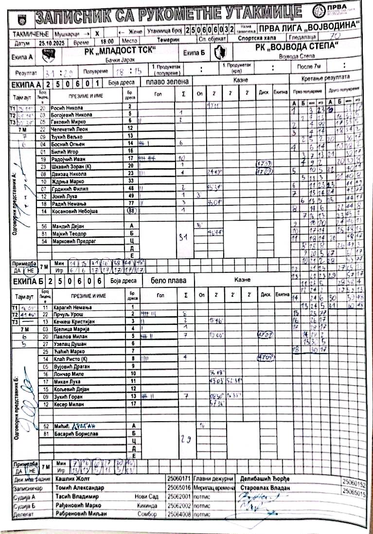 А судија: Владимир Тасић Б судија: Марко Рађеновић Делегат: Миљан Рабреновић |