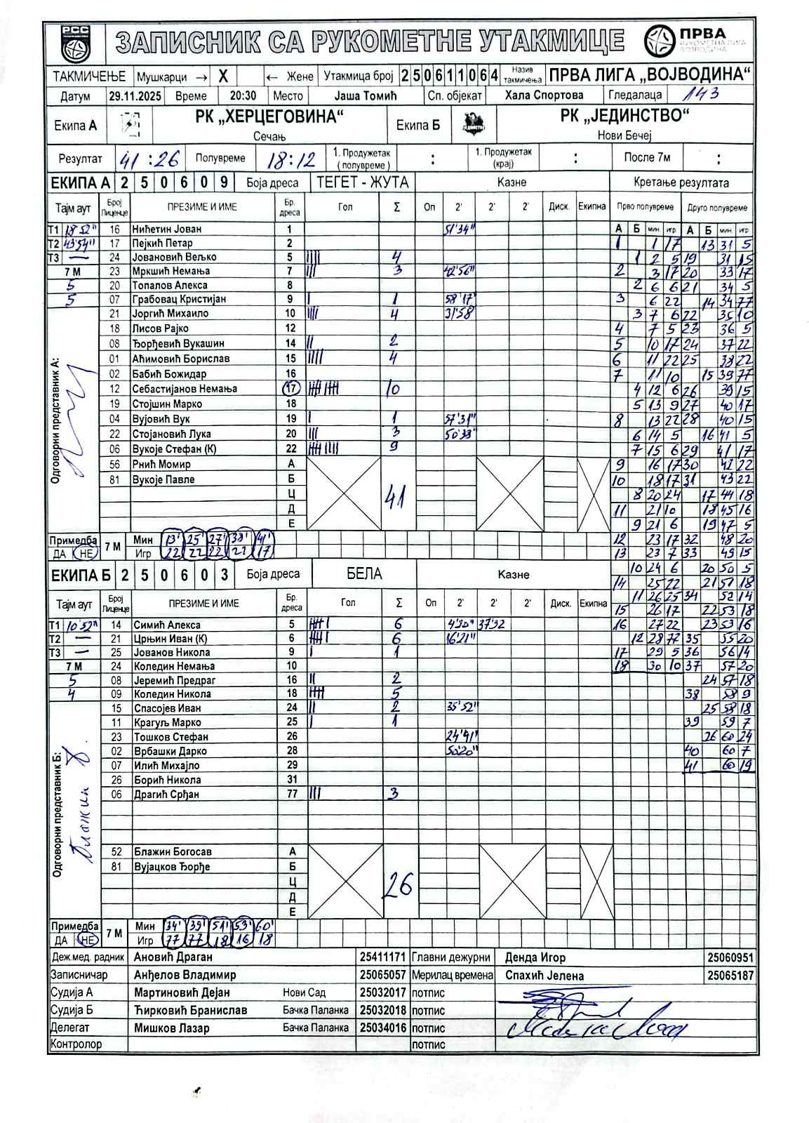 А судија: Дејан Мартиновић Б судија: Бранислав Ћирковић Делегат: Лазар Мишков |